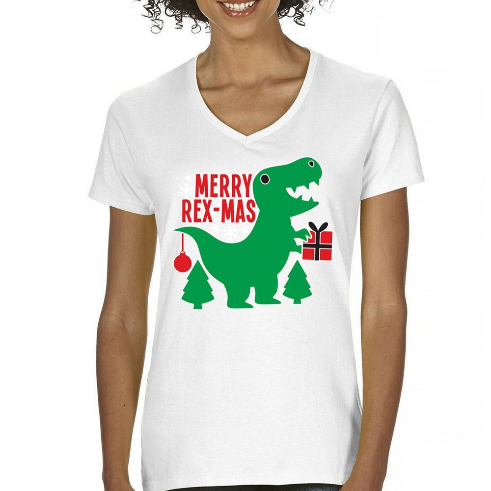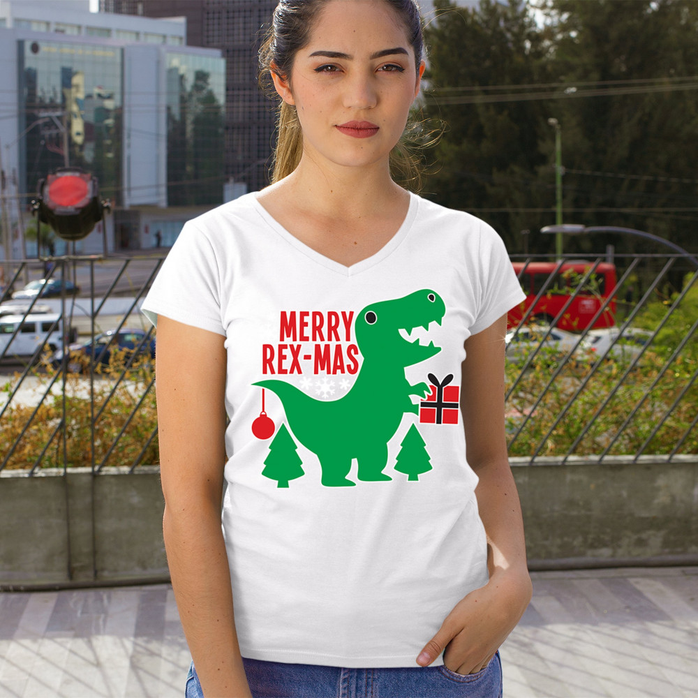 Merry Rex-Mas dinosaur Christmas design with a cute T-Rex, gift, and festive holiday details. Perfect for fun family celebrations and cheerful winter style.