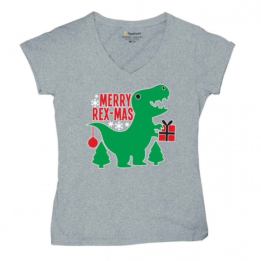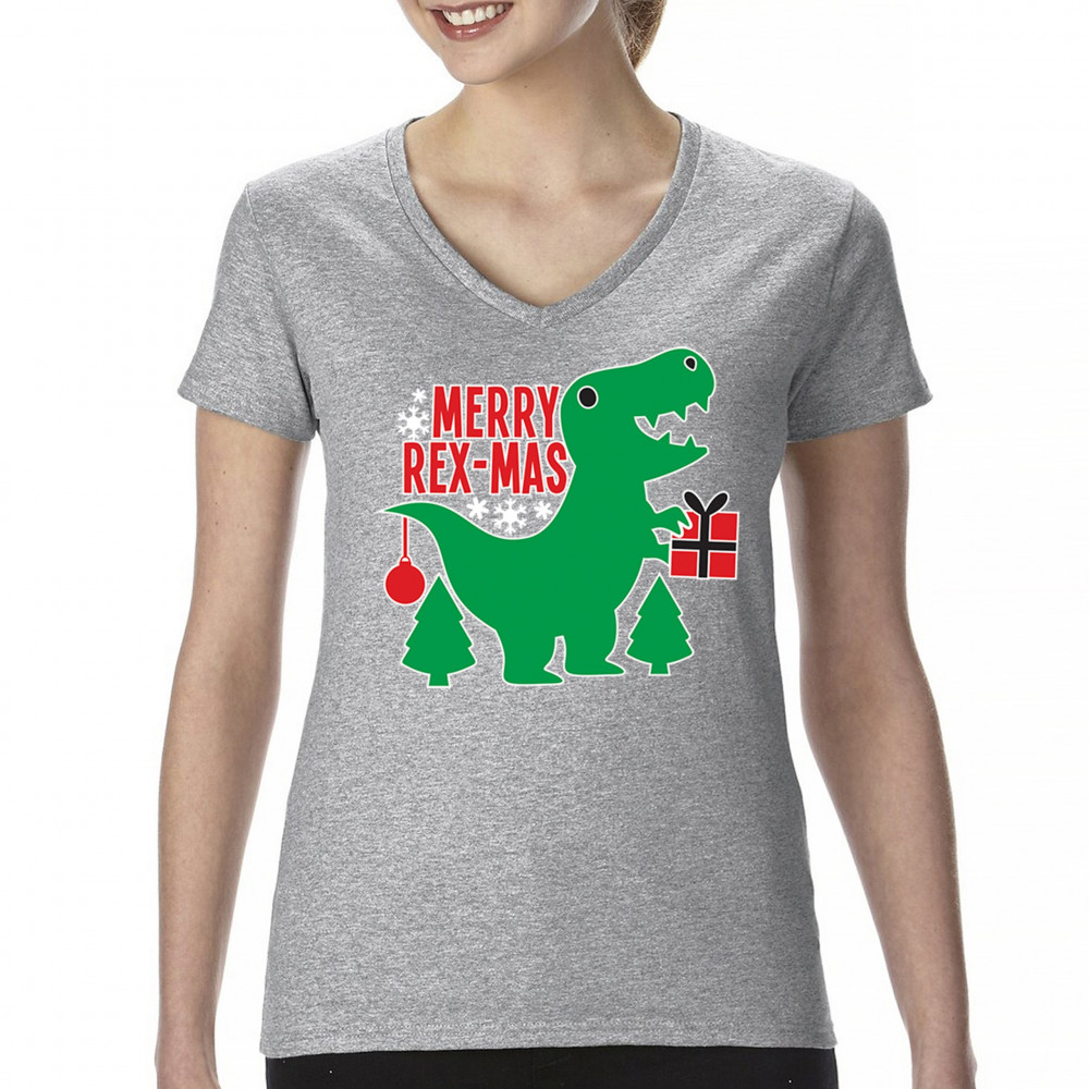 Merry Rex-Mas dinosaur Christmas design with a cute T-Rex, gift, and festive holiday details. Perfect for fun family celebrations and cheerful winter style.