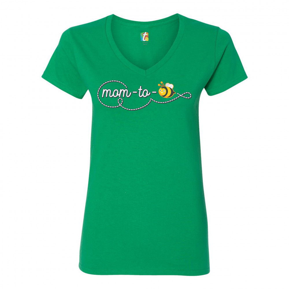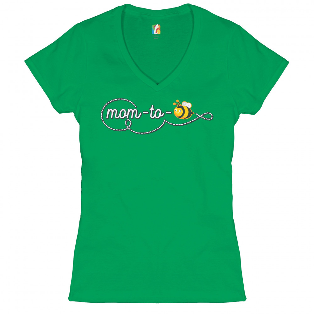 MOM TO BEE women's v-neck t-shirt pregnancy announcement mother's day tee green