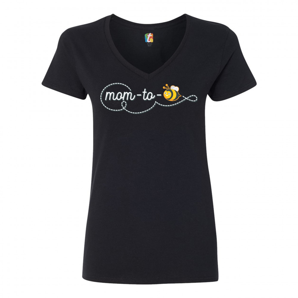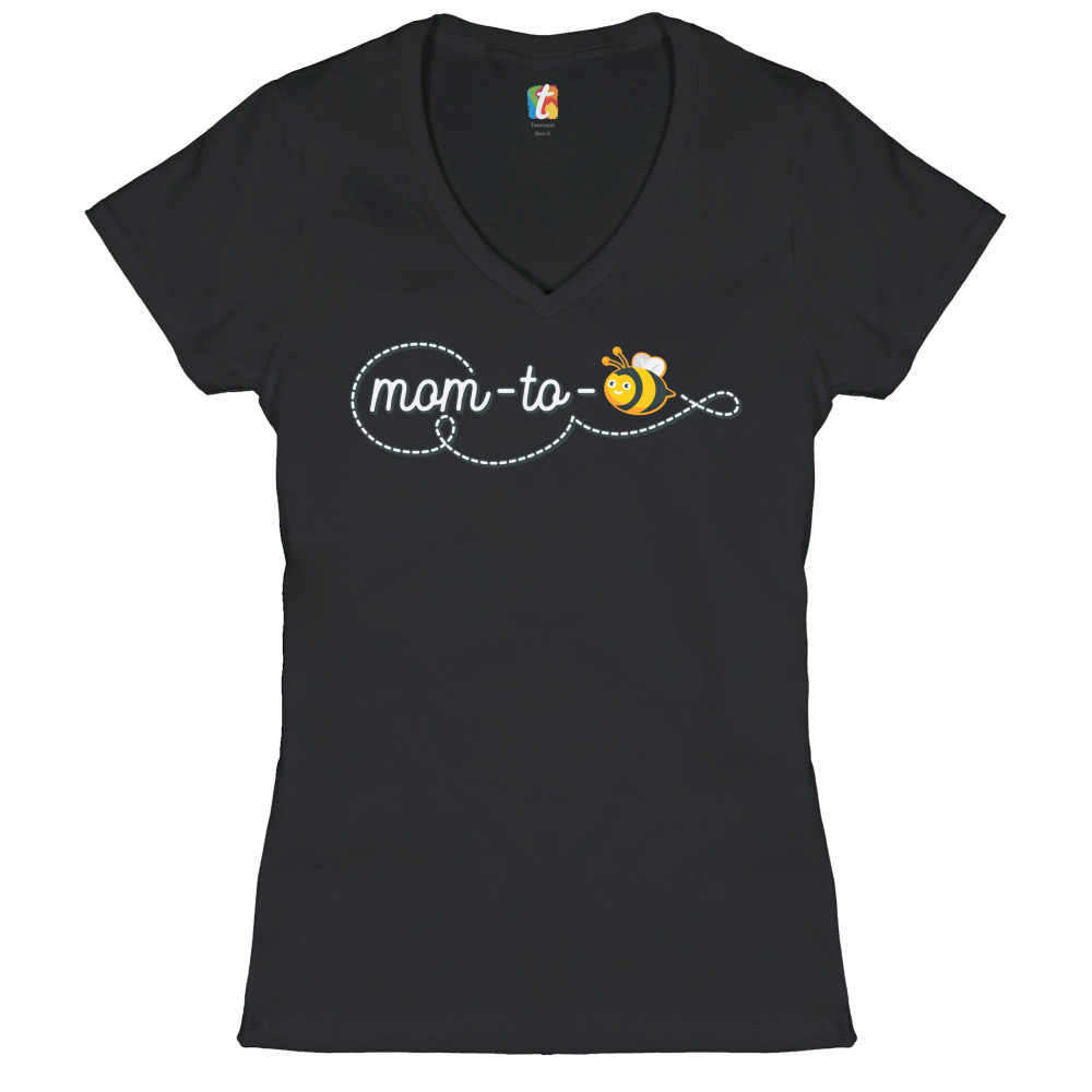MOM TO BEE women's v-neck t-shirt pregnancy announcement mother's day tee black