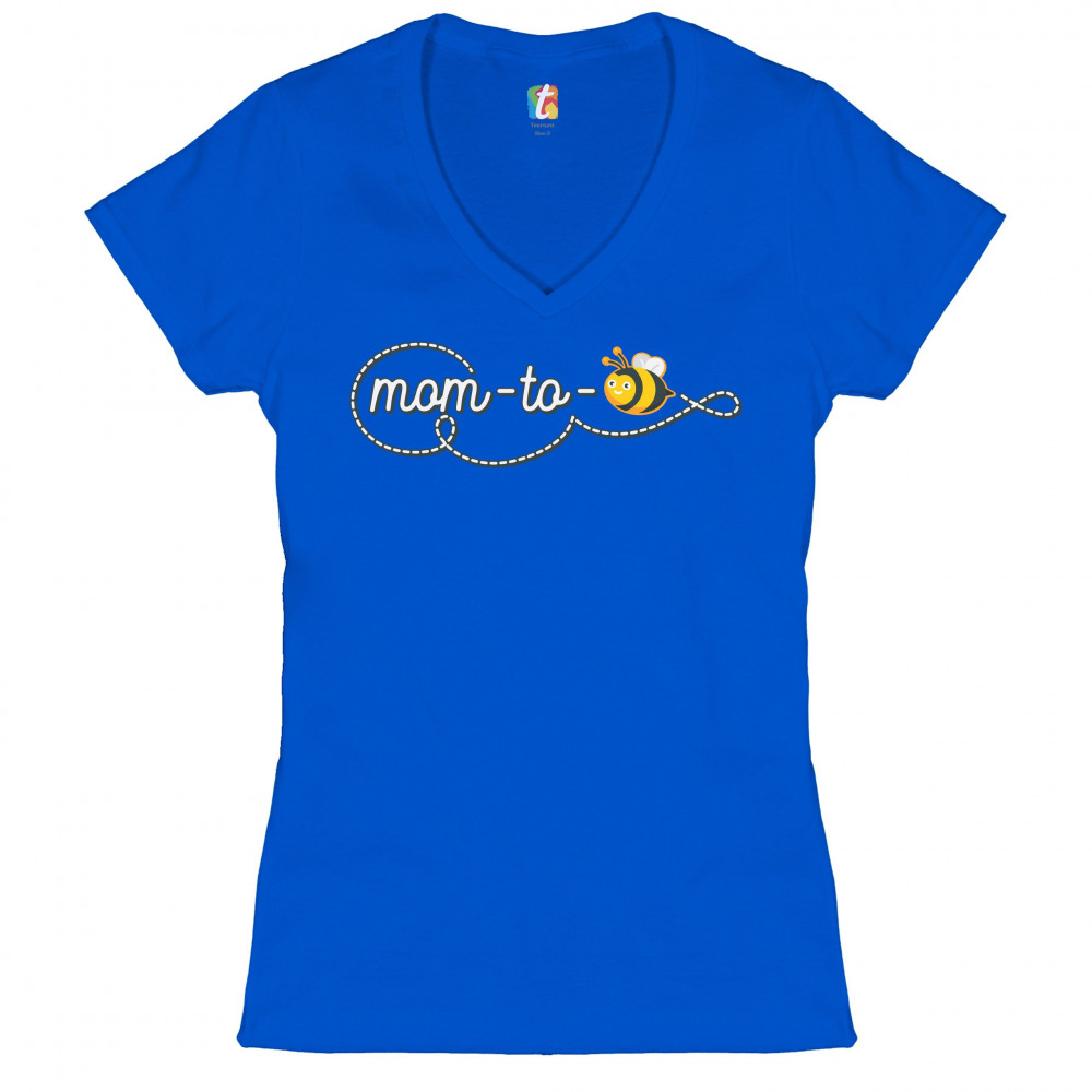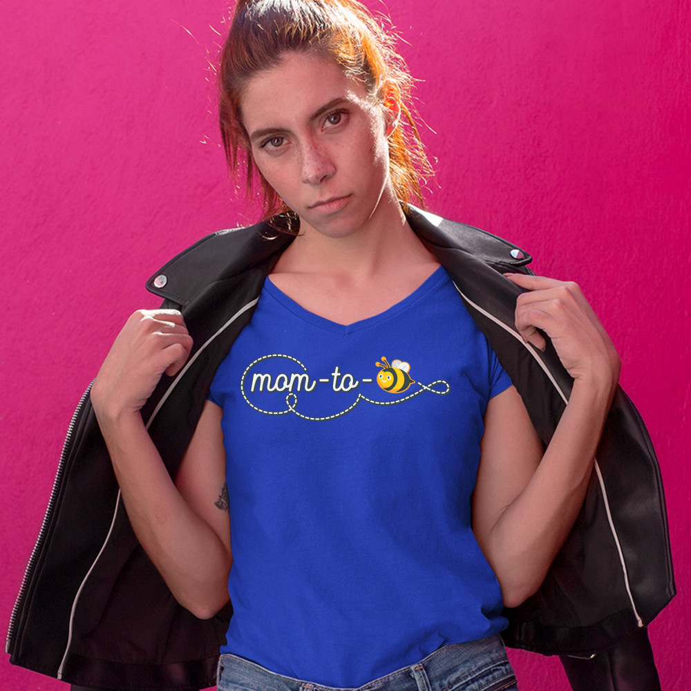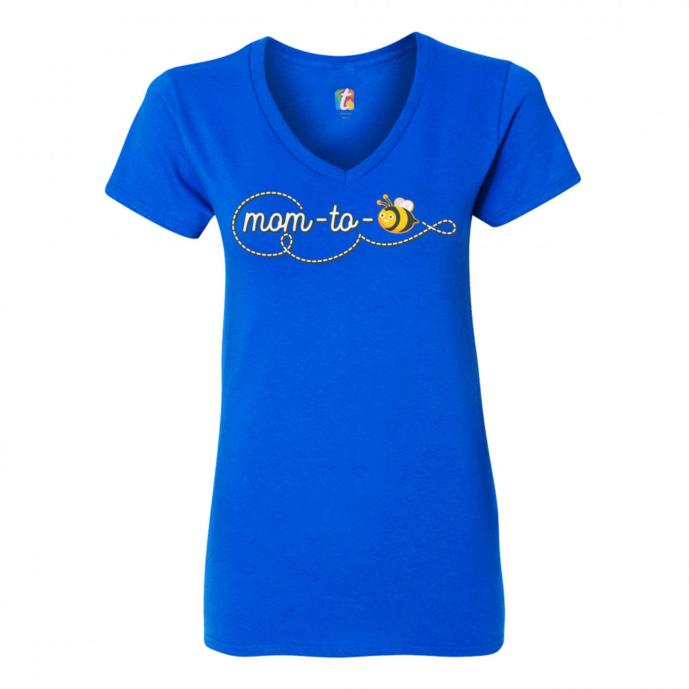 MOM TO BEE women's v-neck t-shirt pregnancy announcement mother's day tee royal blue