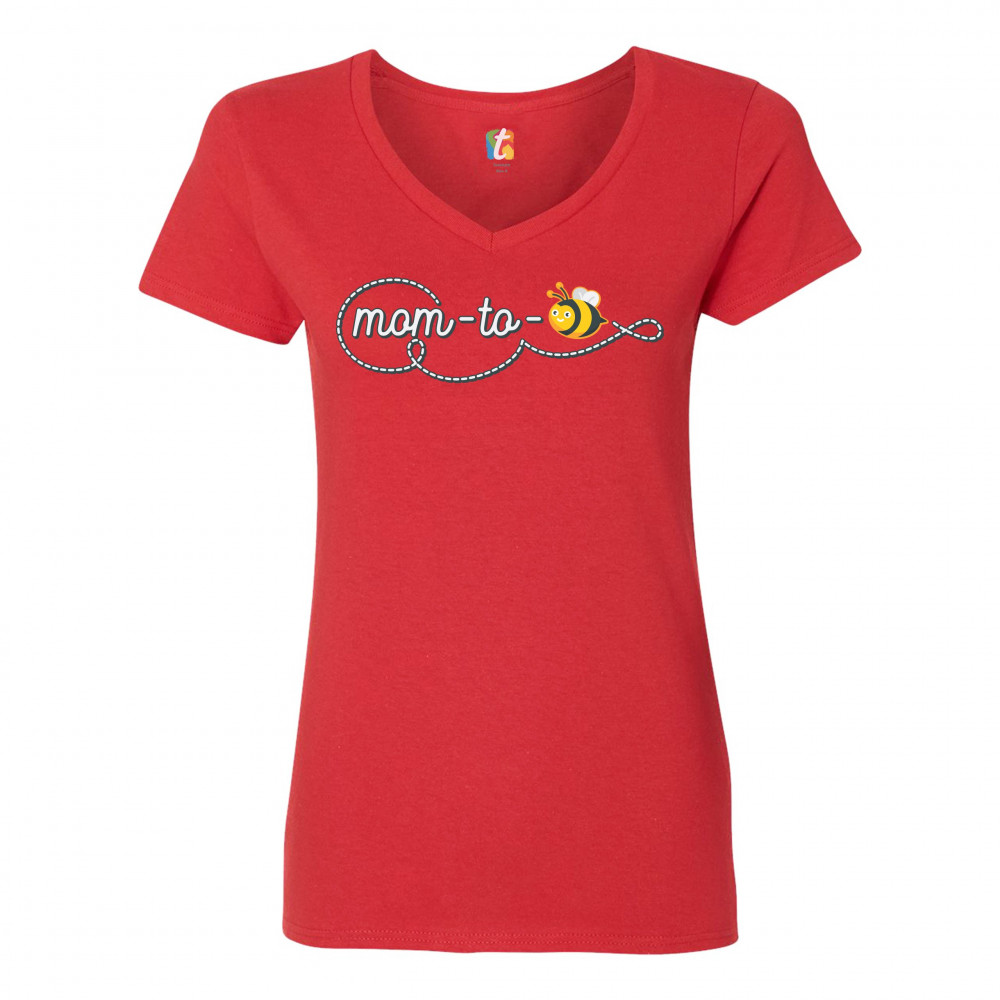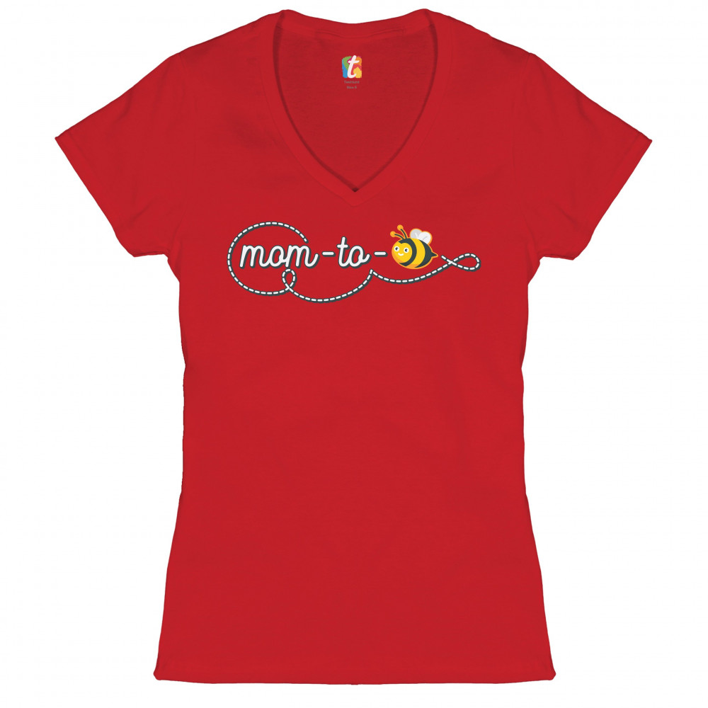 MOM TO BEE women's v-neck t-shirt pregnancy announcement mother's day tee red