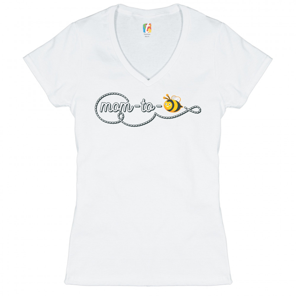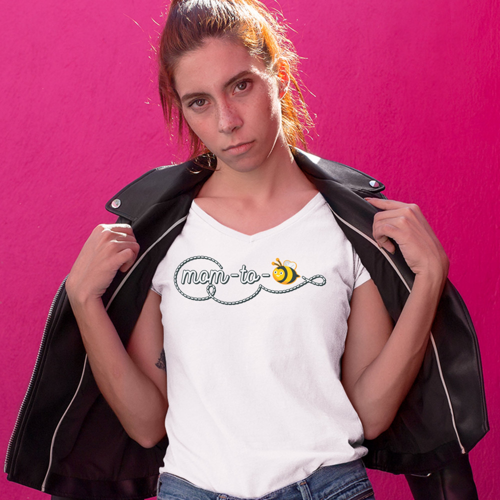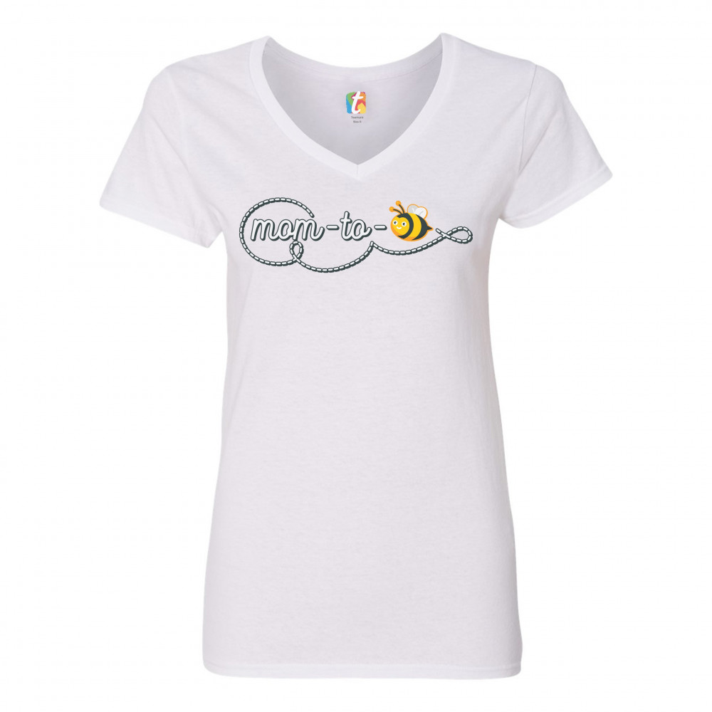 MOM TO BEE women's v-neck t-shirt pregnancy announcement mother's day tee white