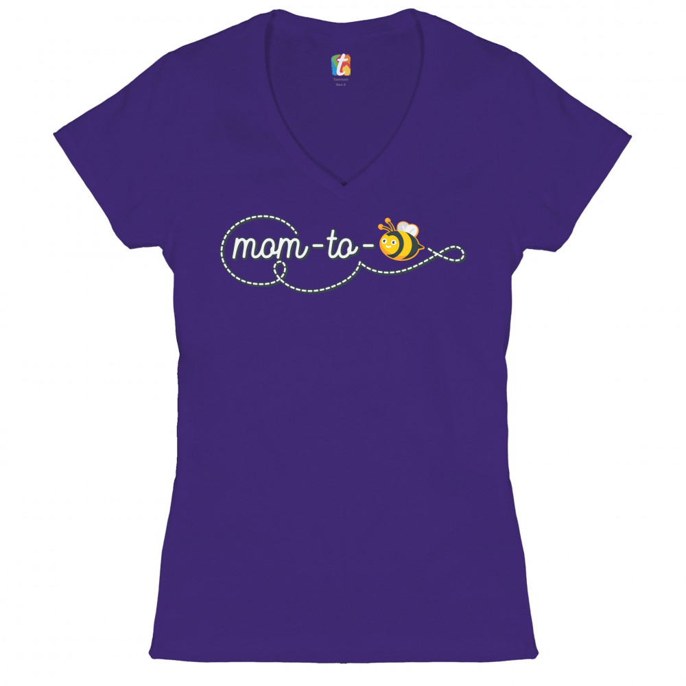 MOM TO BEE women's v-neck t-shirt pregnancy announcement mother's day tee purple