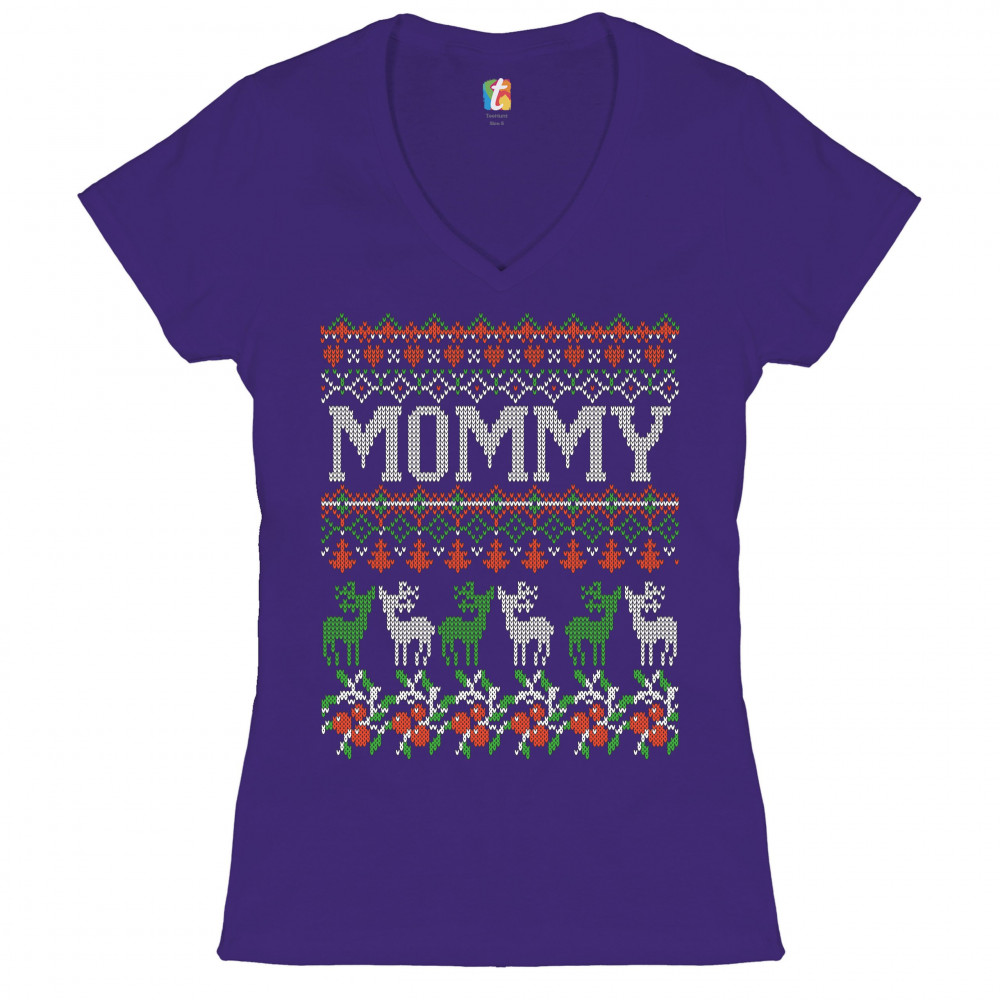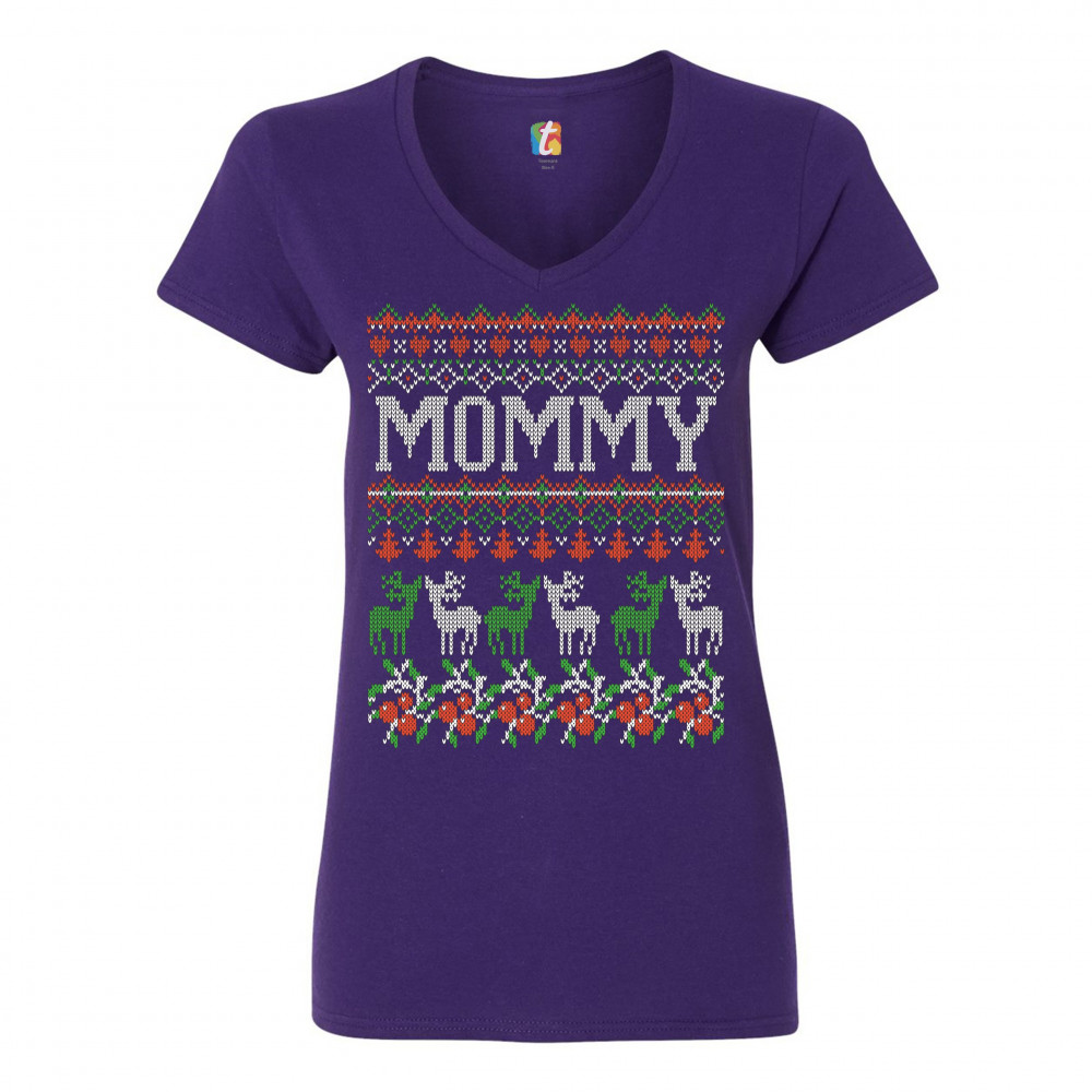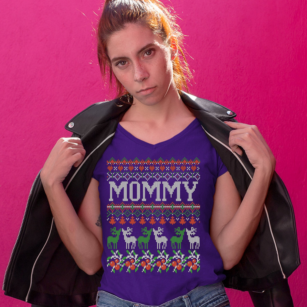 MOMMY women's v-neck t-shirt ugly sweatshirt for mom christmas reindeer tee purple