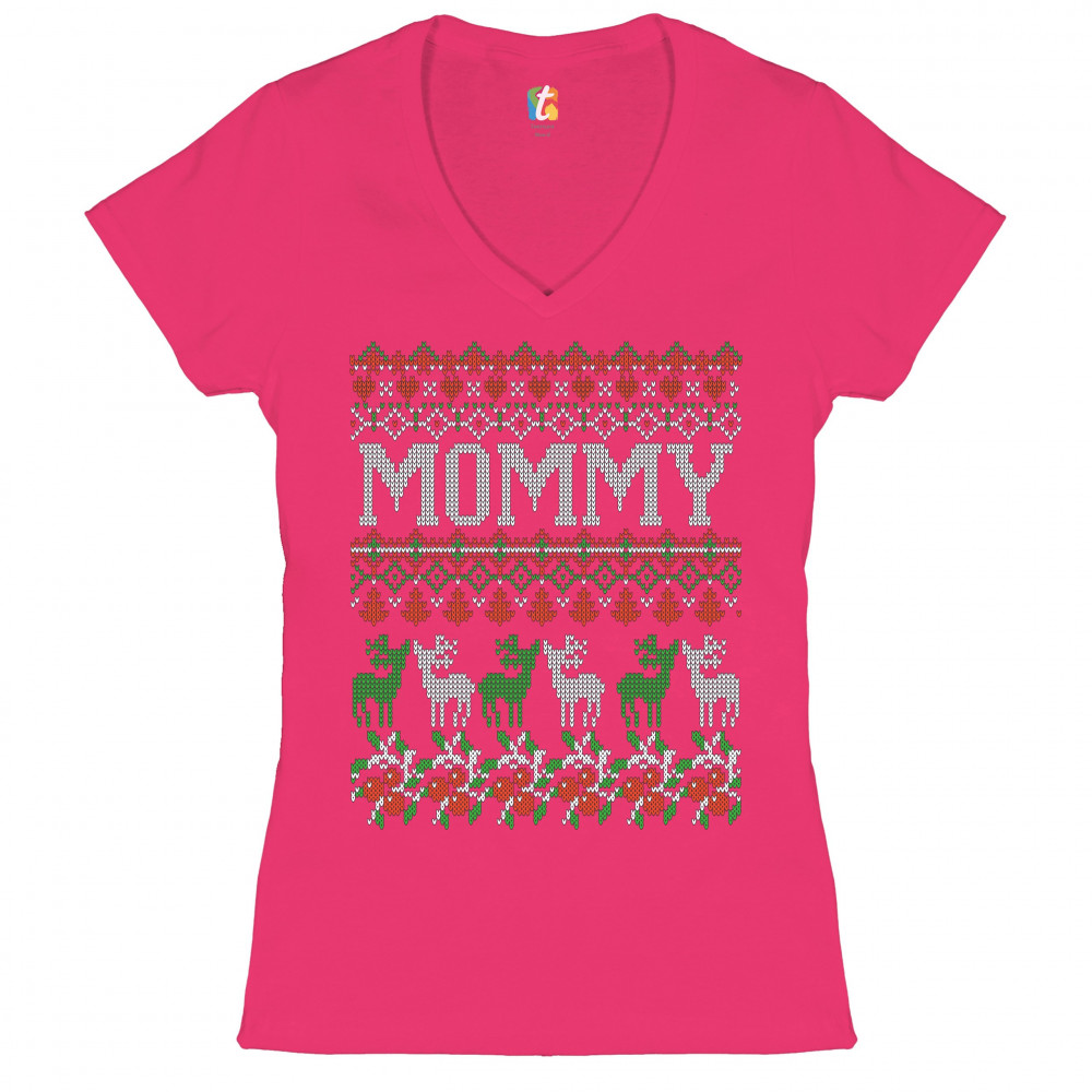 MOMMY women's v-neck t-shirt ugly sweatshirt for mom christmas reindeer tee pink