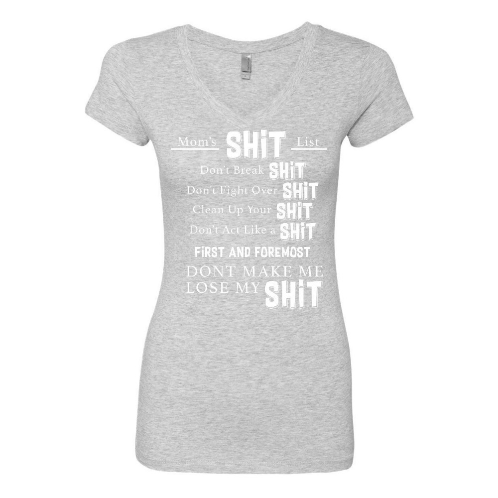 MOM'S SH*T LIST women's v-neck t-shirt offensive humor mother's day parenting gray