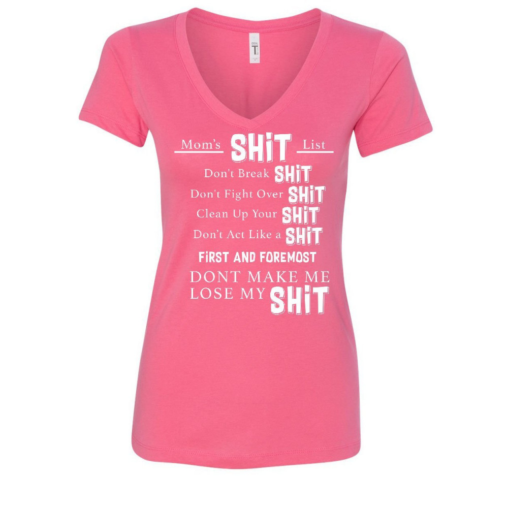 MOM'S SH*T LIST women's v-neck t-shirt offensive humor mother's day parenting pink