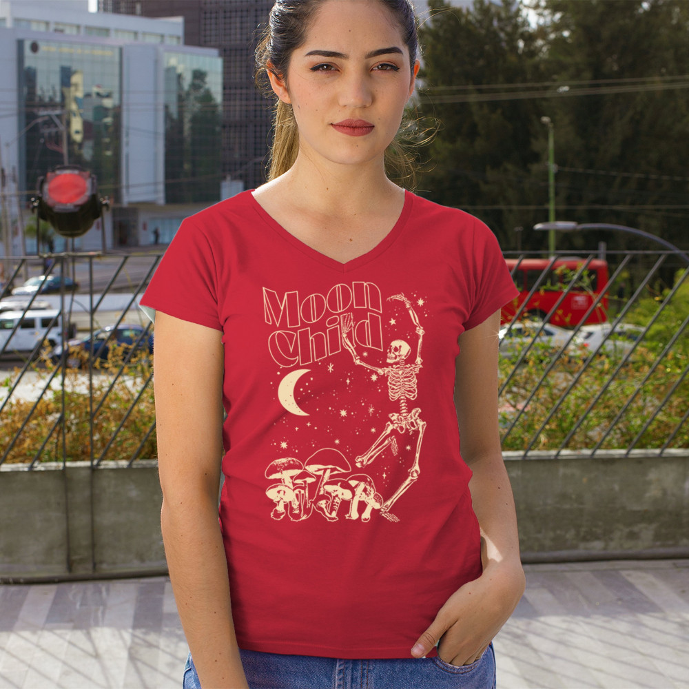 Mystical “Moon Child†design with skeleton, mushrooms, stars, and moon. Retro celestial vibes for dreamers, witches, and free spirits.