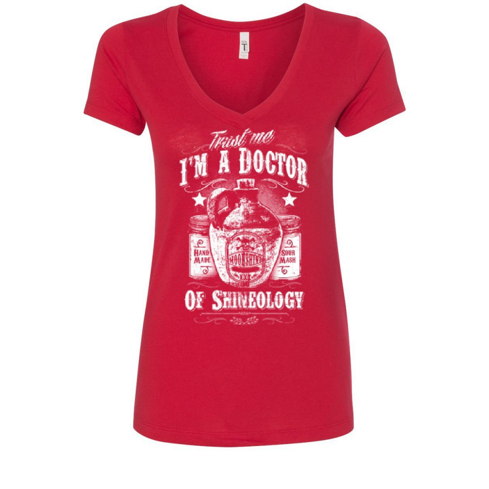 MOONSHINE DOCTOR women's v-neck t-shirt shineology whisky liquor booze drinking red