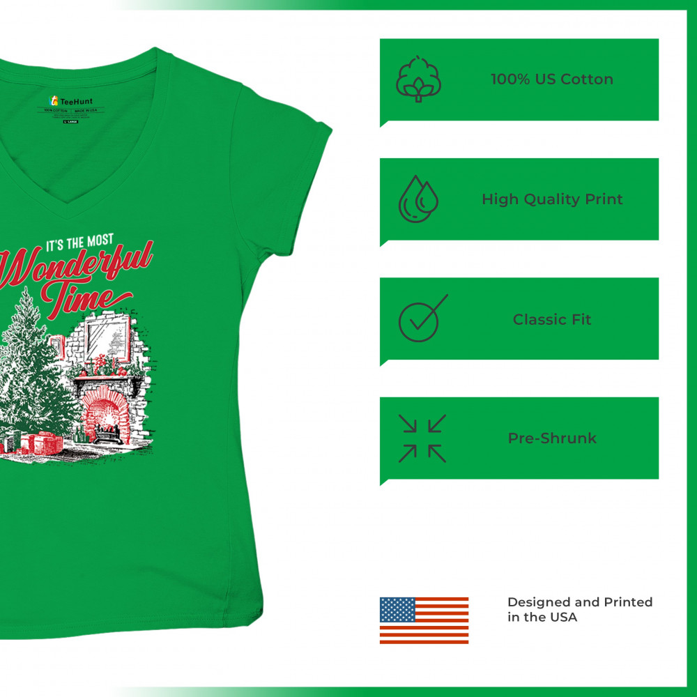 Make your holidays brighter with this “Most Wonderful Time†Christmas design, featuring a glowing fireplace, festive living room, and decorated Christmas tree. This cozy Christmas shirt combines holiday home decor style with classic Merry Xmas charm. Perfect for those who love Santa Claus, Rudolph, reindeer, Let It Snow vibes, and cheerful holiday fashion.