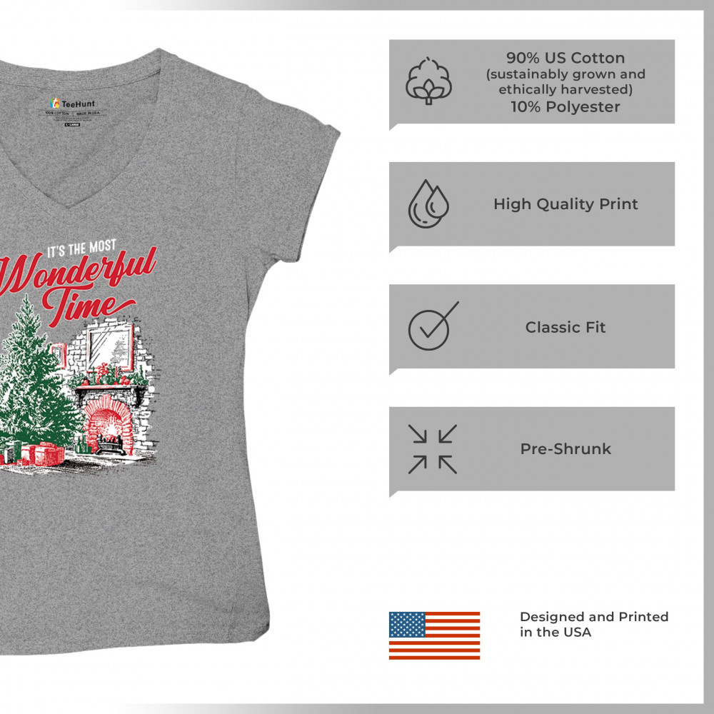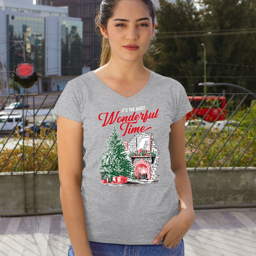 Make your holidays brighter with this “Most Wonderful Time†Christmas design, featuring a glowing fireplace, festive living room, and decorated Christmas tree. This cozy Christmas shirt combines holiday home decor style with classic Merry Xmas charm. Perfect for those who love Santa Claus, Rudolph, reindeer, Let It Snow vibes, and cheerful holiday fashion.