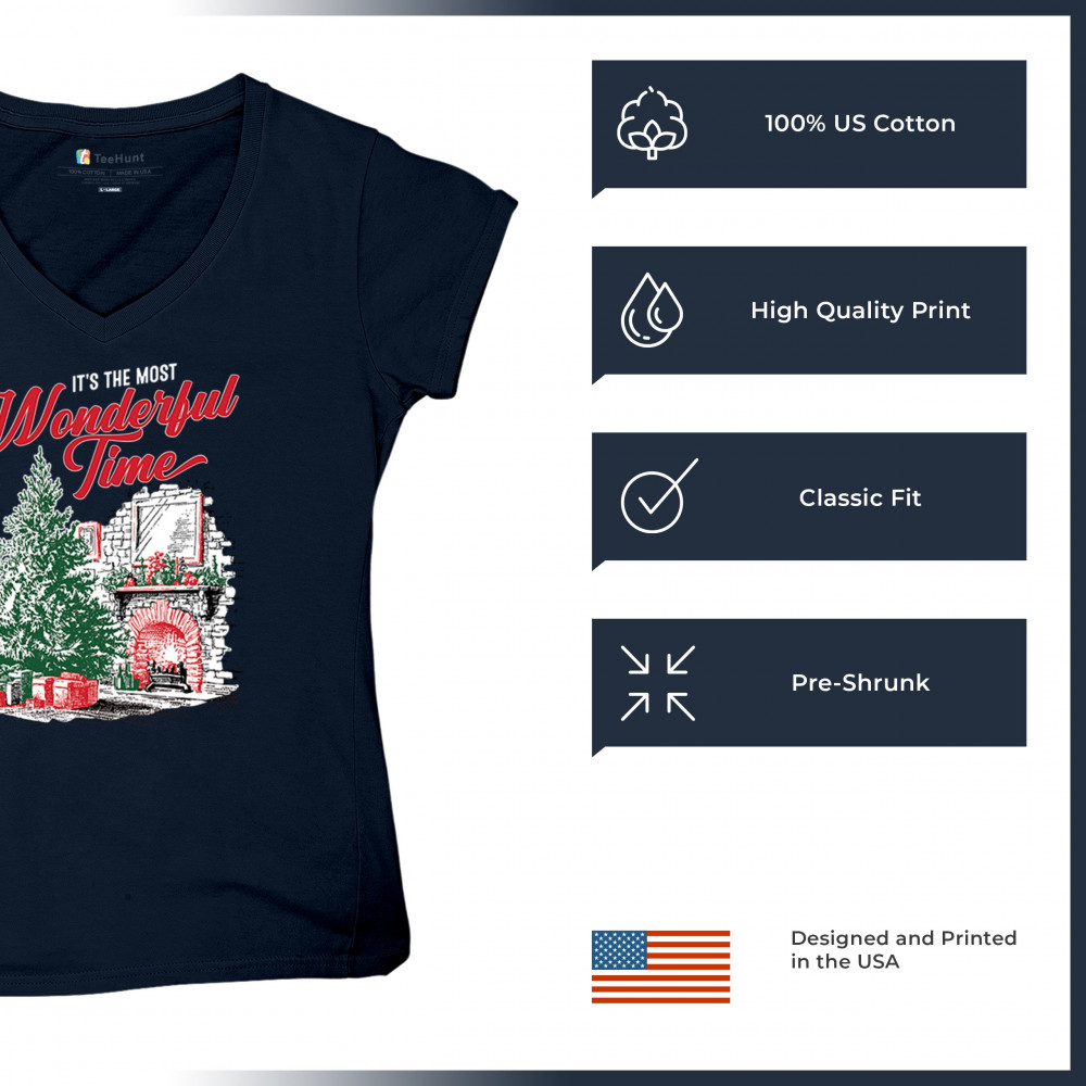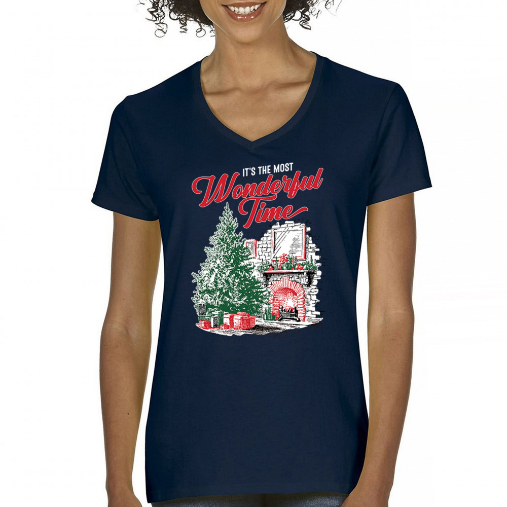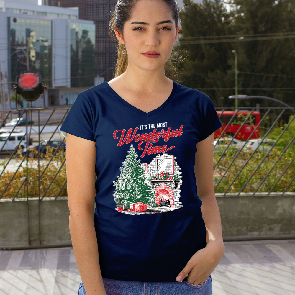 Make your holidays brighter with this “Most Wonderful Time†Christmas design, featuring a glowing fireplace, festive living room, and decorated Christmas tree. This cozy Christmas shirt combines holiday home decor style with classic Merry Xmas charm. Perfect for those who love Santa Claus, Rudolph, reindeer, Let It Snow vibes, and cheerful holiday fashion.