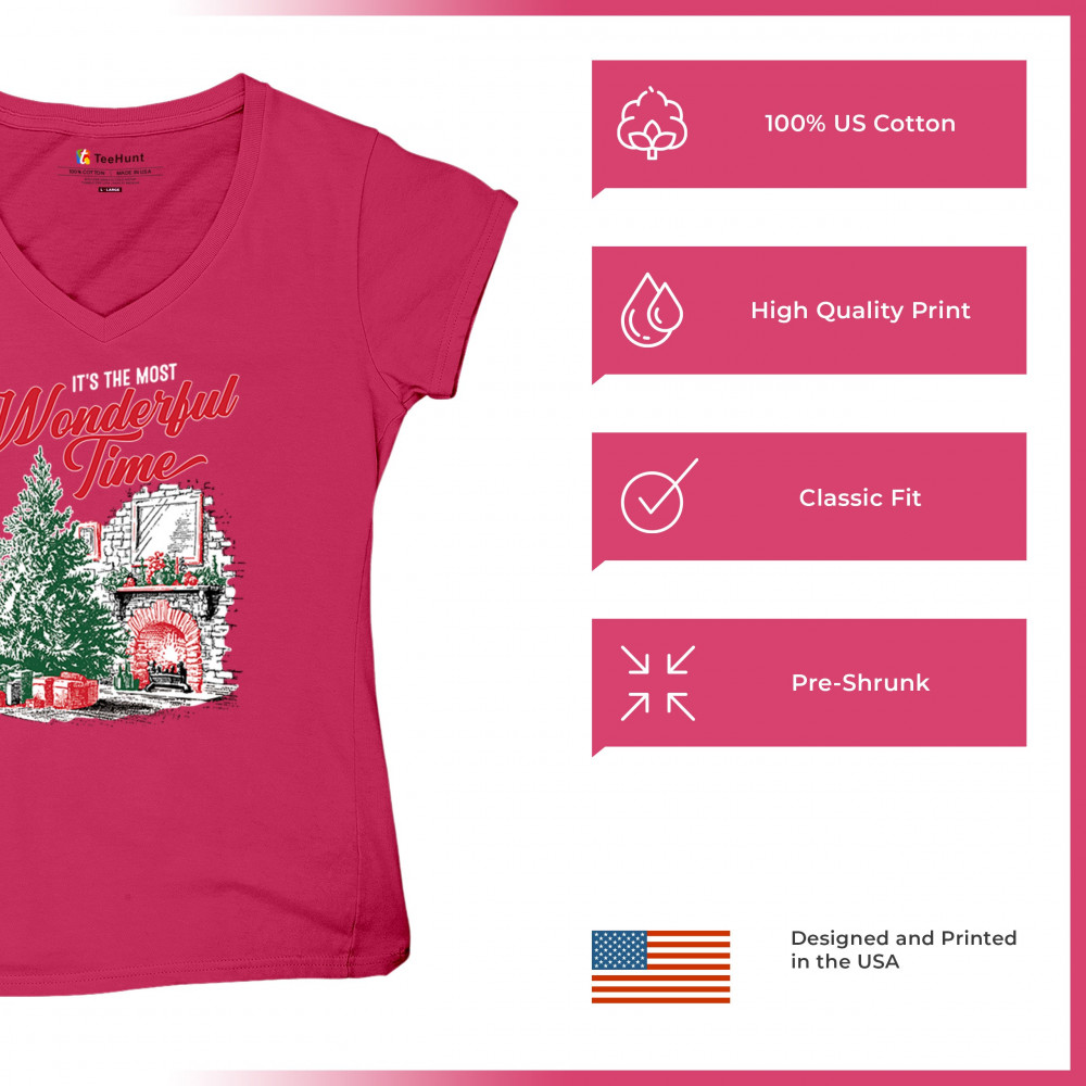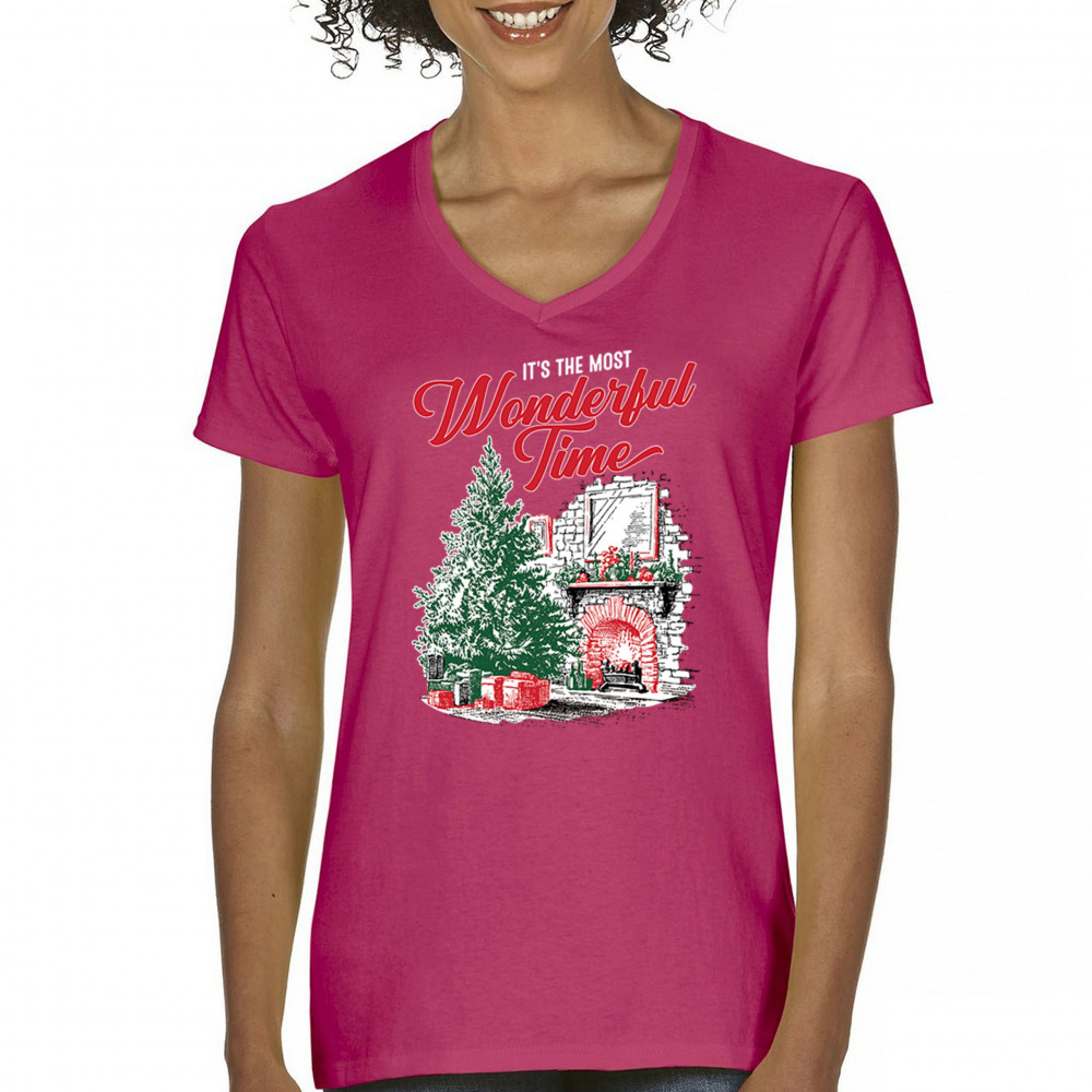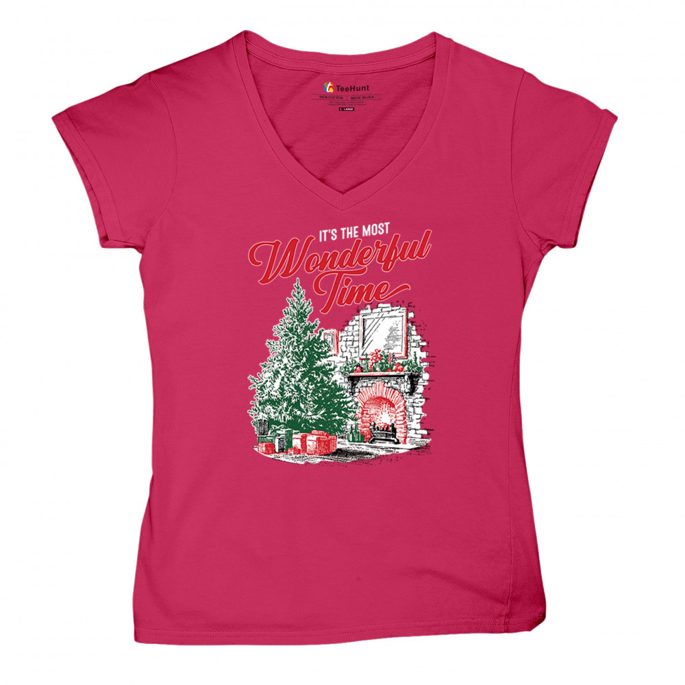 Make your holidays brighter with this “Most Wonderful Time†Christmas design, featuring a glowing fireplace, festive living room, and decorated Christmas tree. This cozy Christmas shirt combines holiday home decor style with classic Merry Xmas charm. Perfect for those who love Santa Claus, Rudolph, reindeer, Let It Snow vibes, and cheerful holiday fashion.