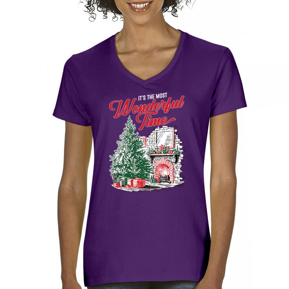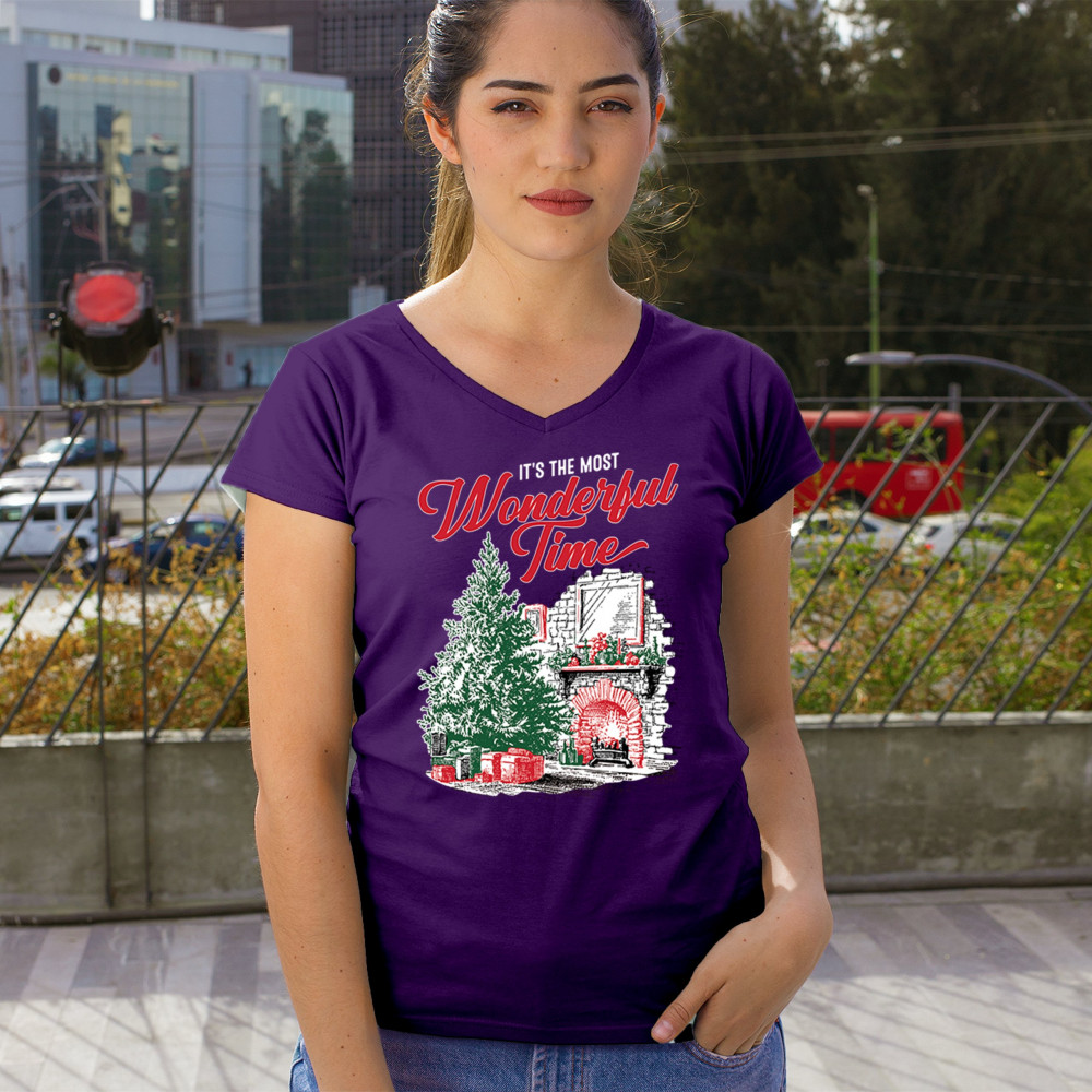 Make your holidays brighter with this “Most Wonderful Time†Christmas design, featuring a glowing fireplace, festive living room, and decorated Christmas tree. This cozy Christmas shirt combines holiday home decor style with classic Merry Xmas charm. Perfect for those who love Santa Claus, Rudolph, reindeer, Let It Snow vibes, and cheerful holiday fashion.