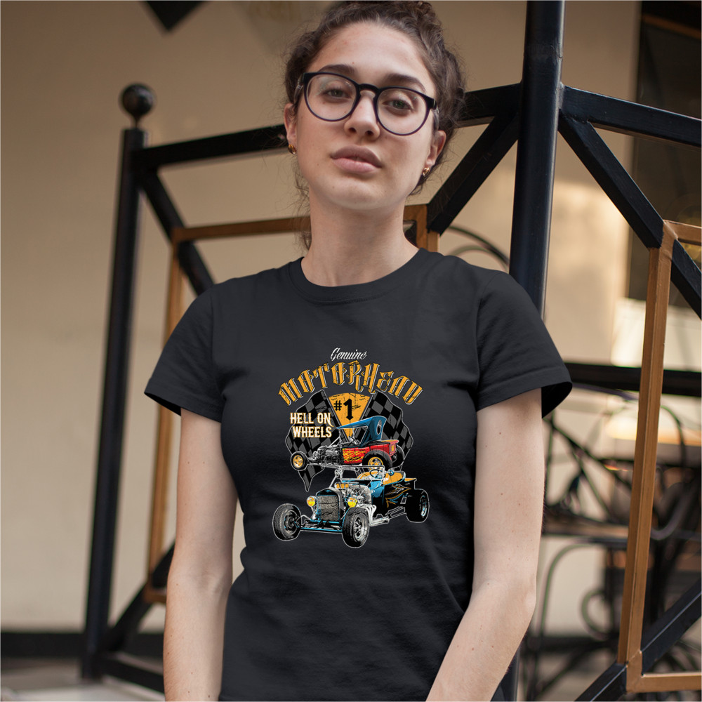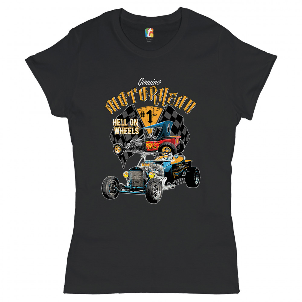 MOTORHEAD HOT ROD t-shrit hell on wheels route 66 drag racing women's tee black