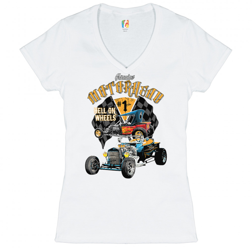 MOTORHEAD HOT ROD women's v-neck t-shirt hell on wheels route 66 racing tee white