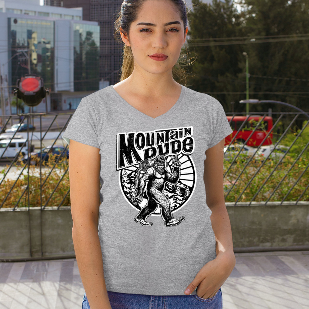 Celebrate outdoor adventures with the "Mountain Dude" design, featuring Sasquatch and mountain scenery. Perfect for hikers, campers, and Bigfoot fans.
