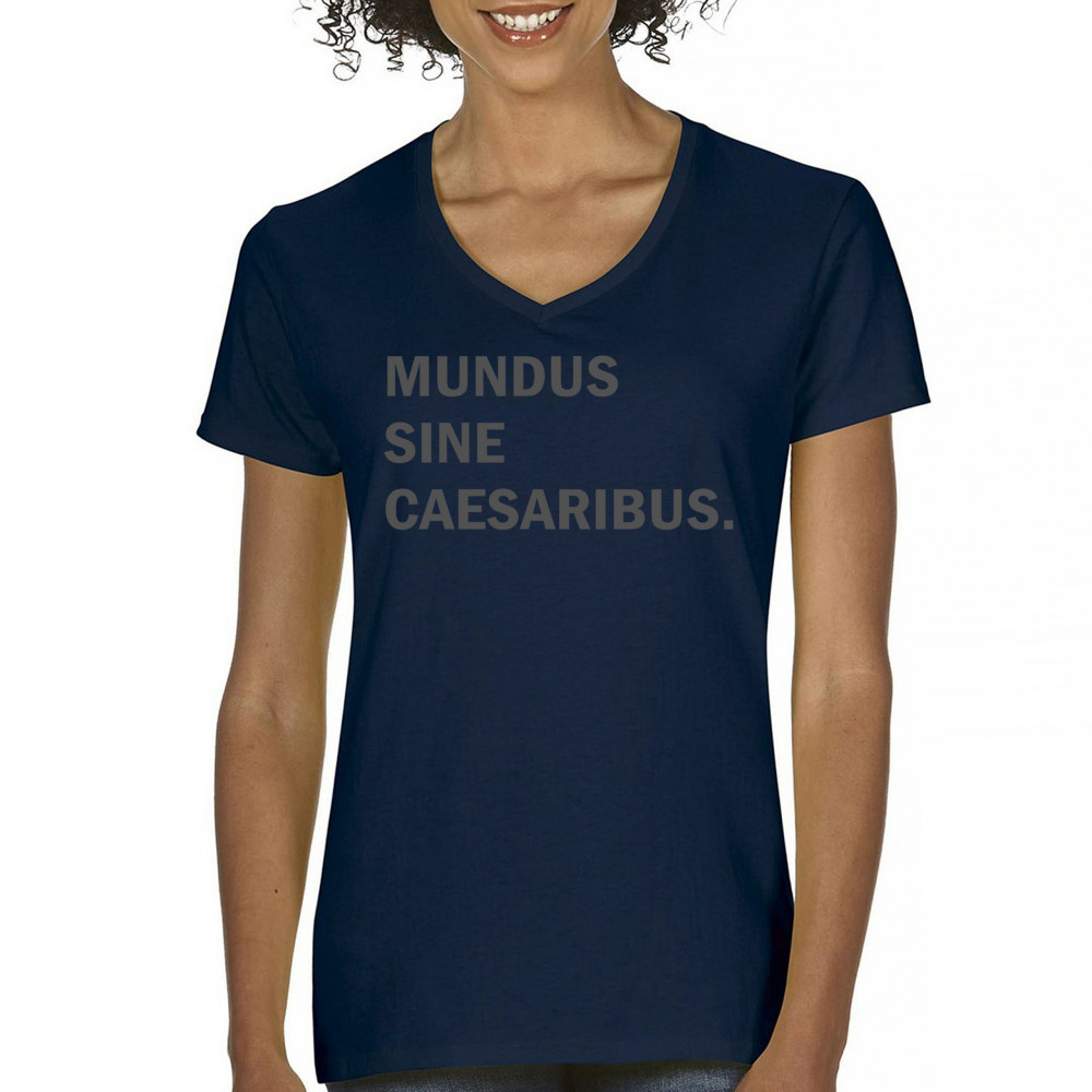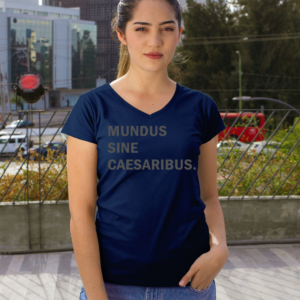 “Mundus Sine Caesaribus†Latin parody tee for rebels, meme lovers, and those tired of tech overlords. Make a witty anti-authority statement.
