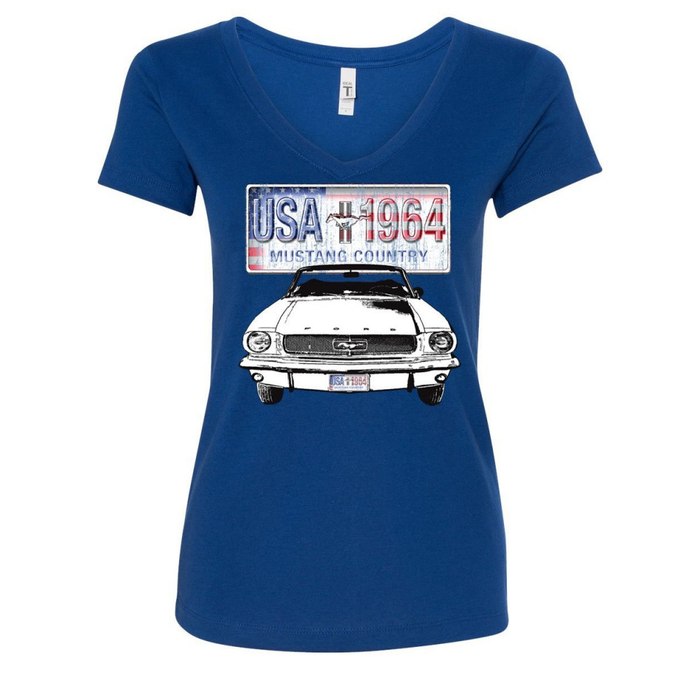 MUSTANG COUNTRY 1964 women's v-neck t-shirt ford legend usa american classic royal blue
