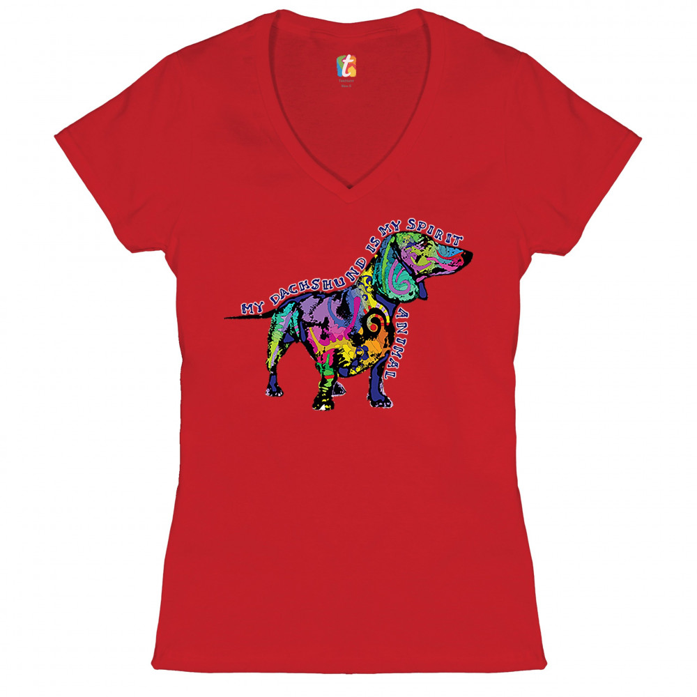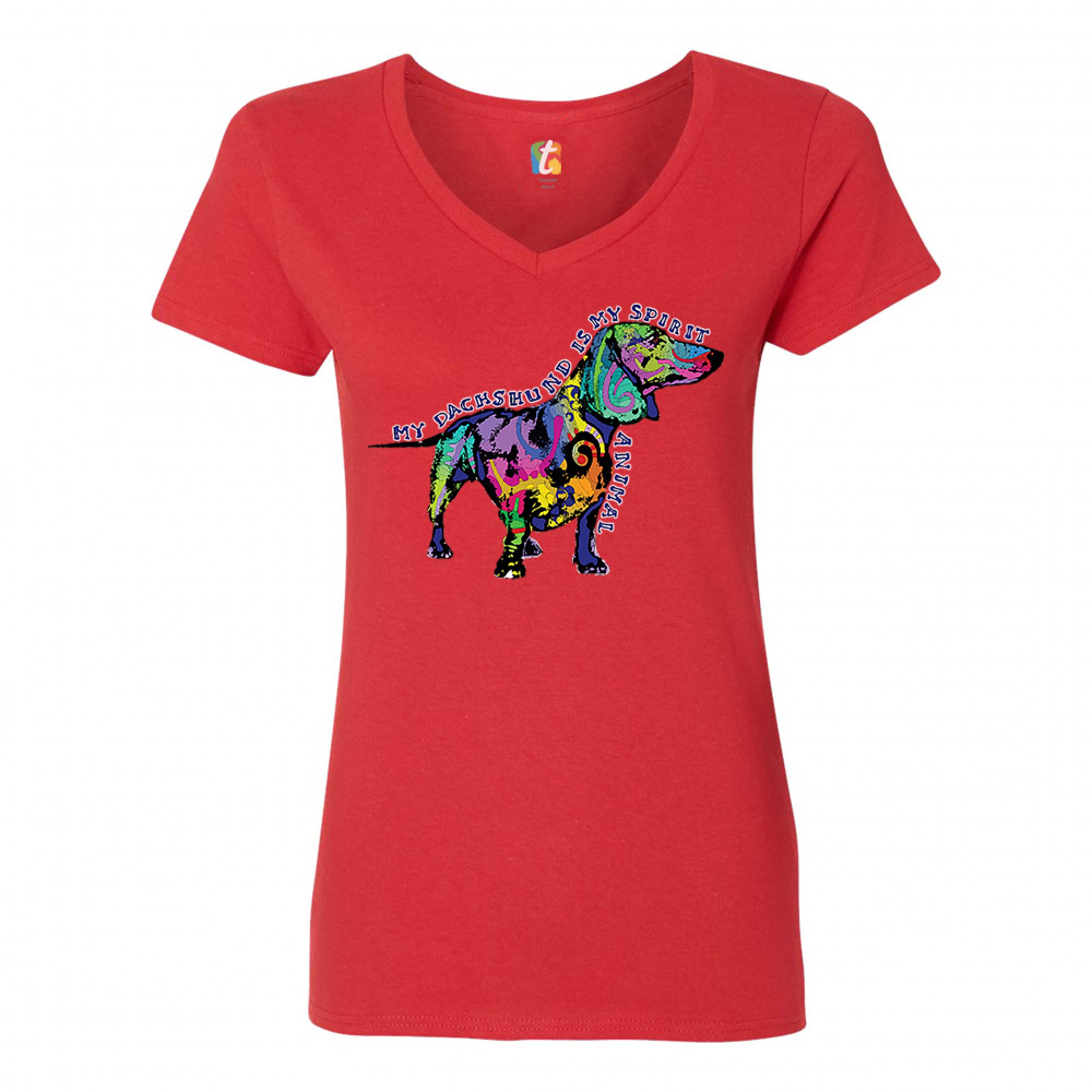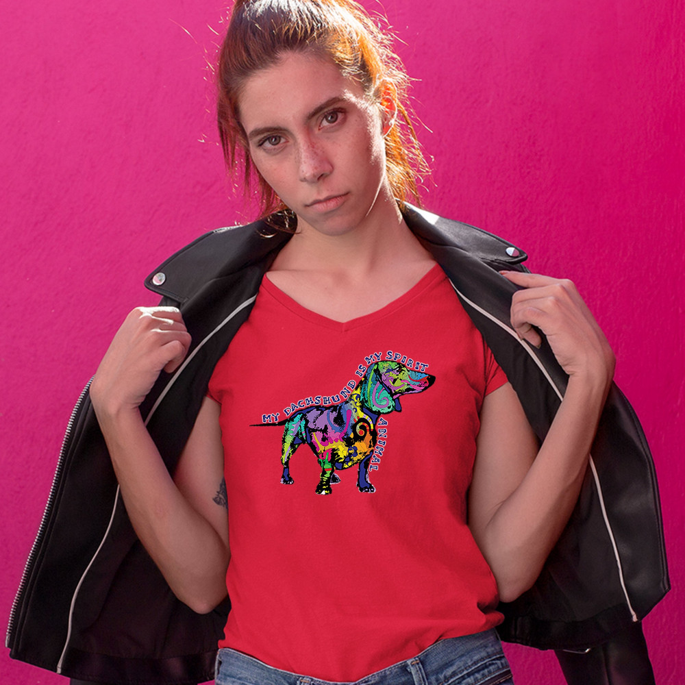 MY DACHSHUND IS MY SPIRIT ANIMAL women's v-neck t-shirt puppy dog lover tee red