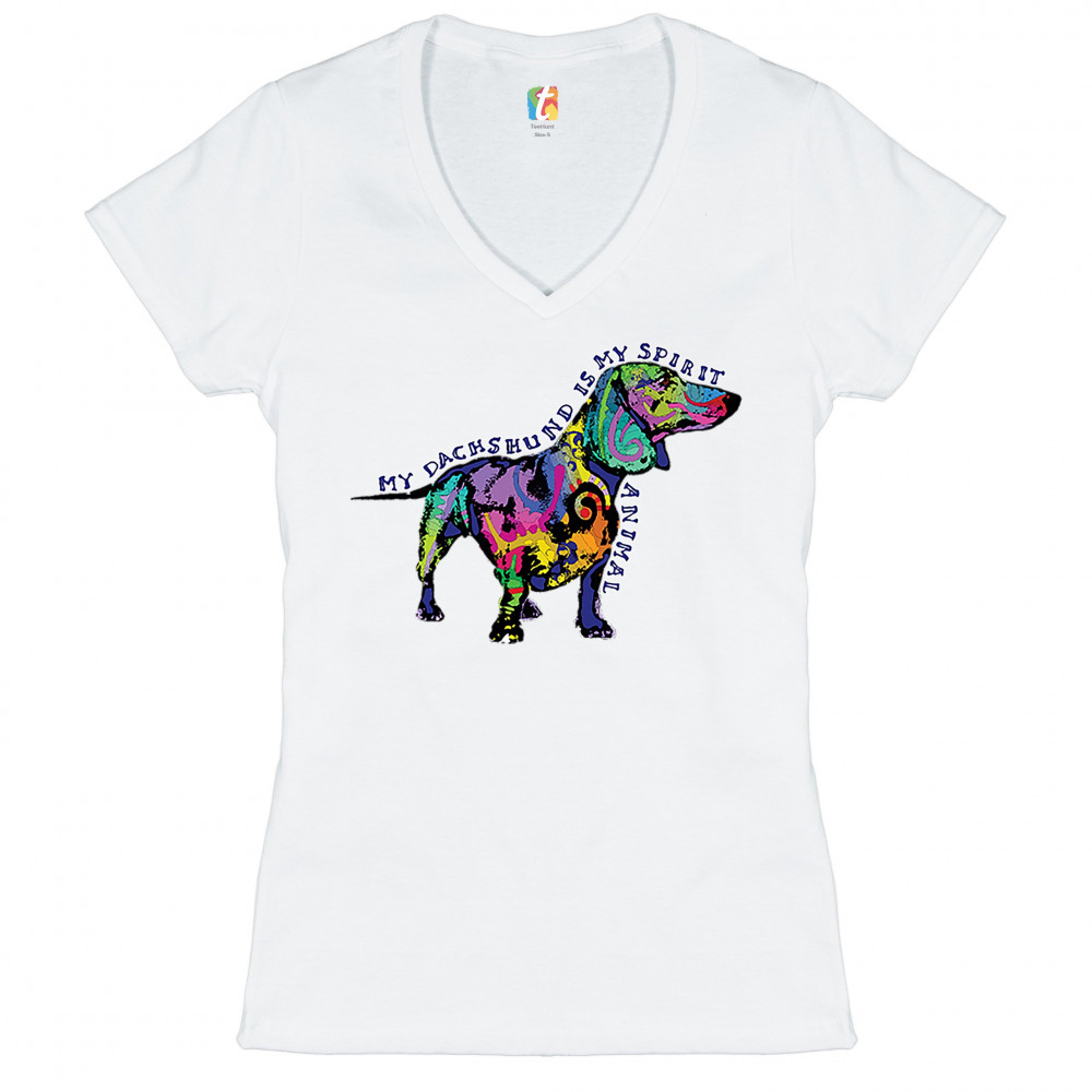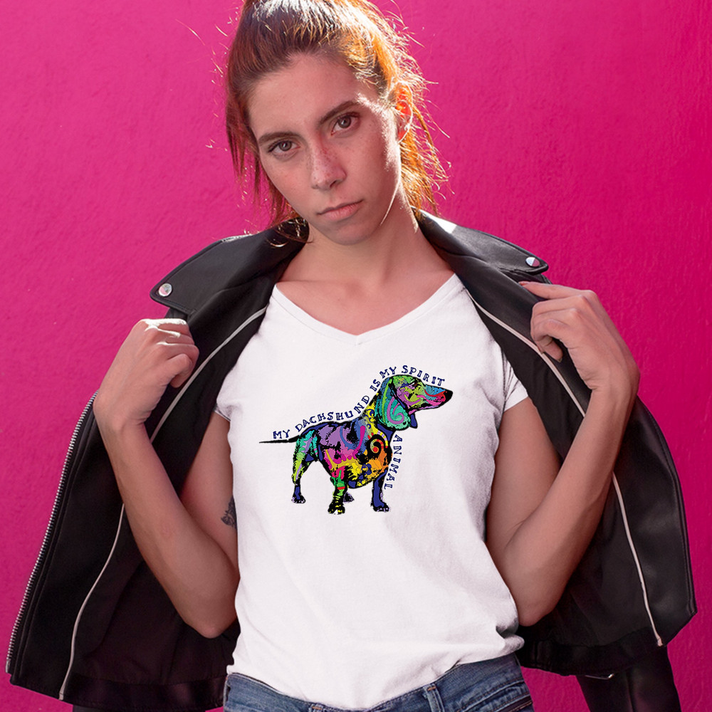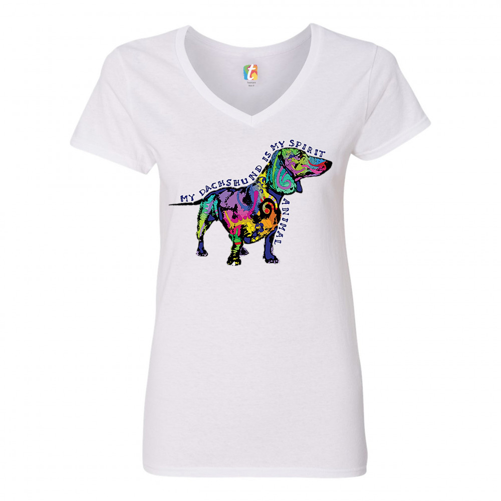 MY DACHSHUND IS MY SPIRIT ANIMAL women's v-neck t-shirt puppy dog lover tee white