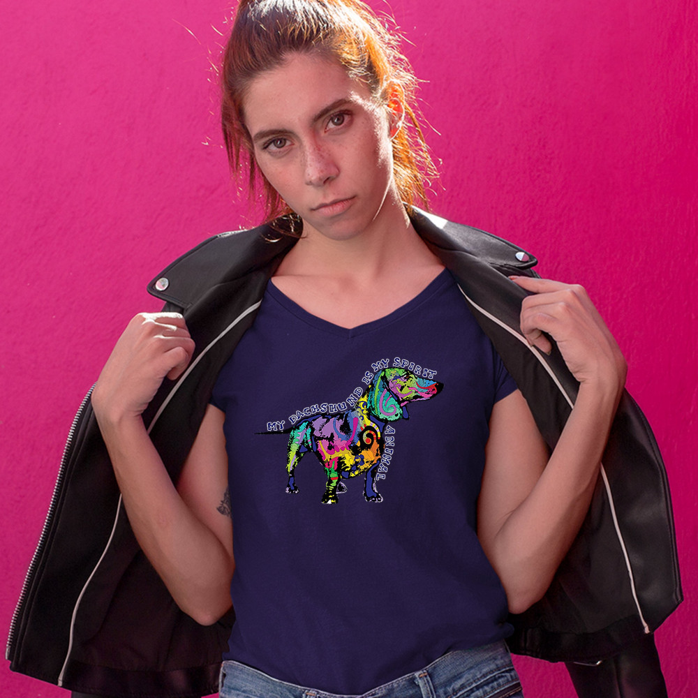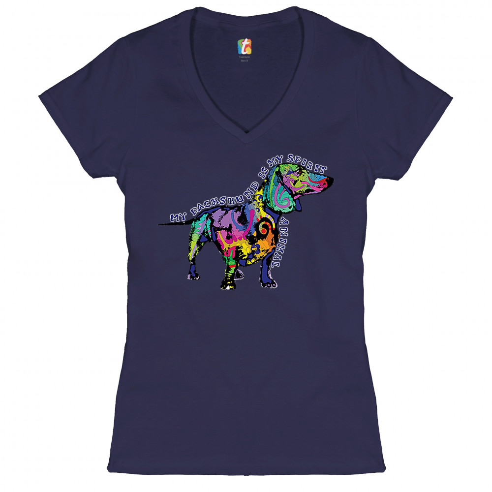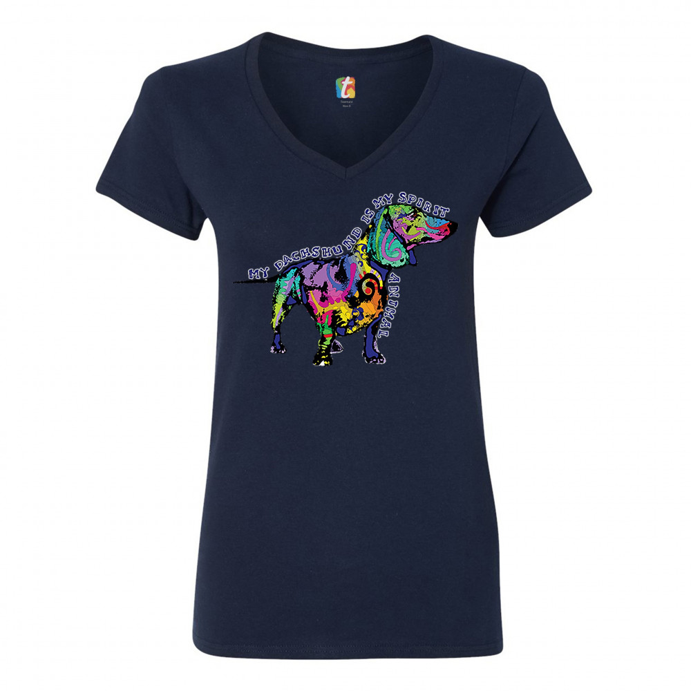 MY DACHSHUND IS MY SPIRIT ANIMAL women's v-neck t-shirt puppy dog lover tee navy blue