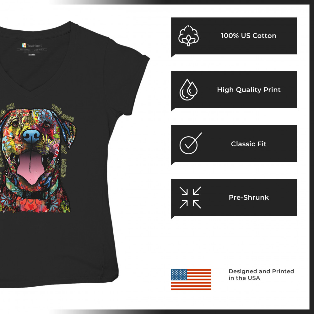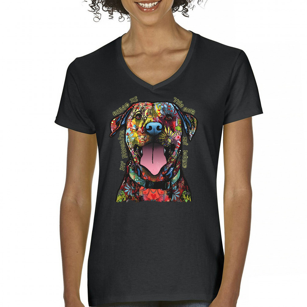 MY FAVORITE BREED IS THE ONE IN NEED women's v-neck t-shirt dean russo dog tee black
