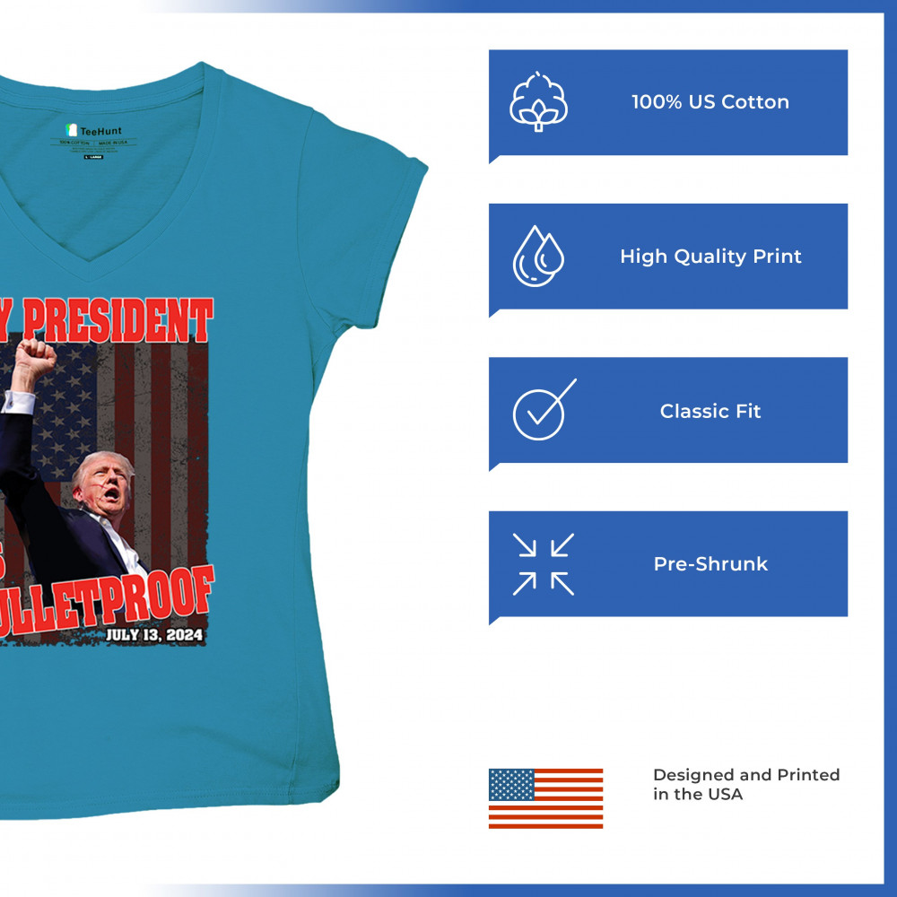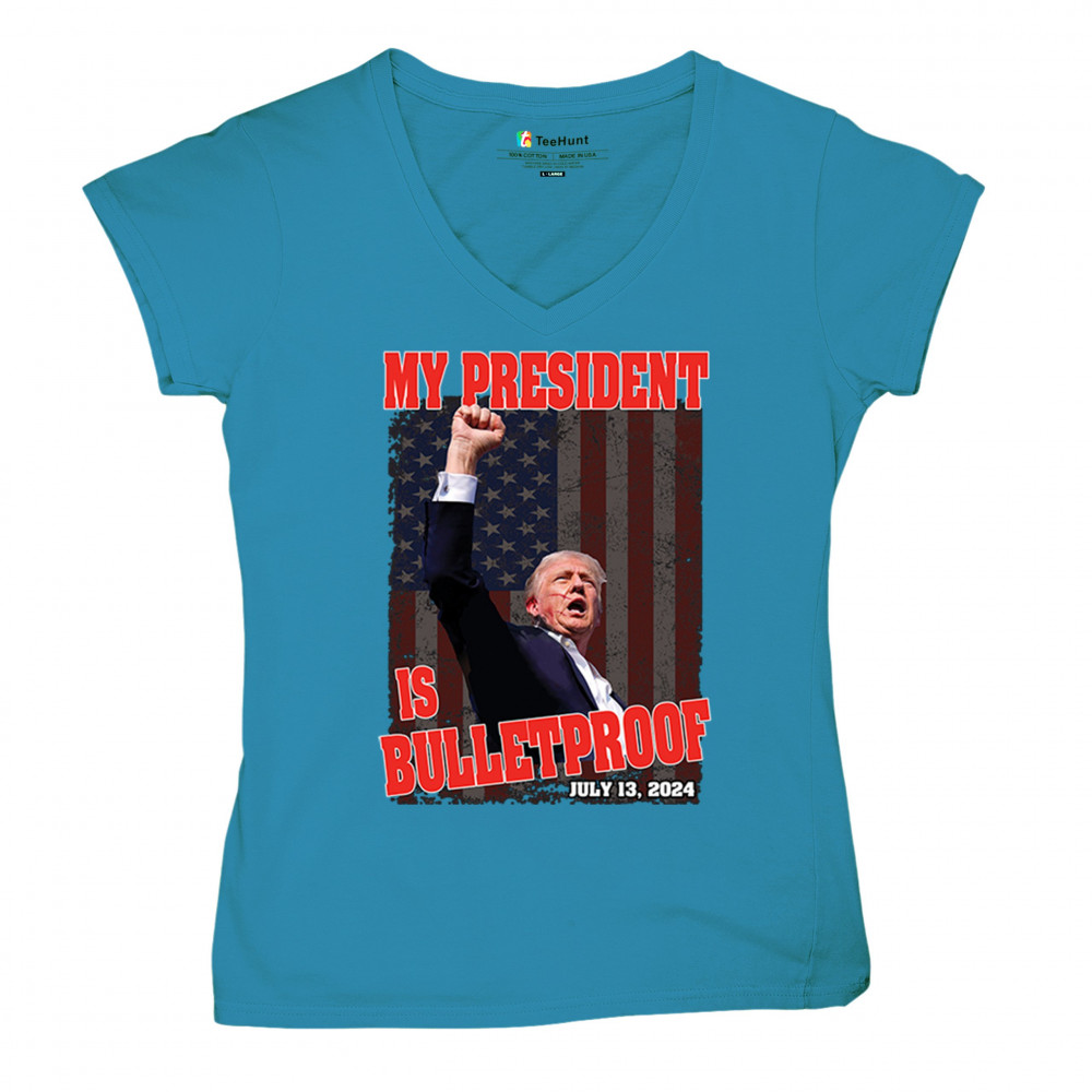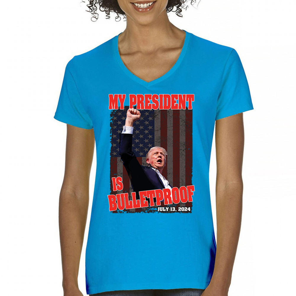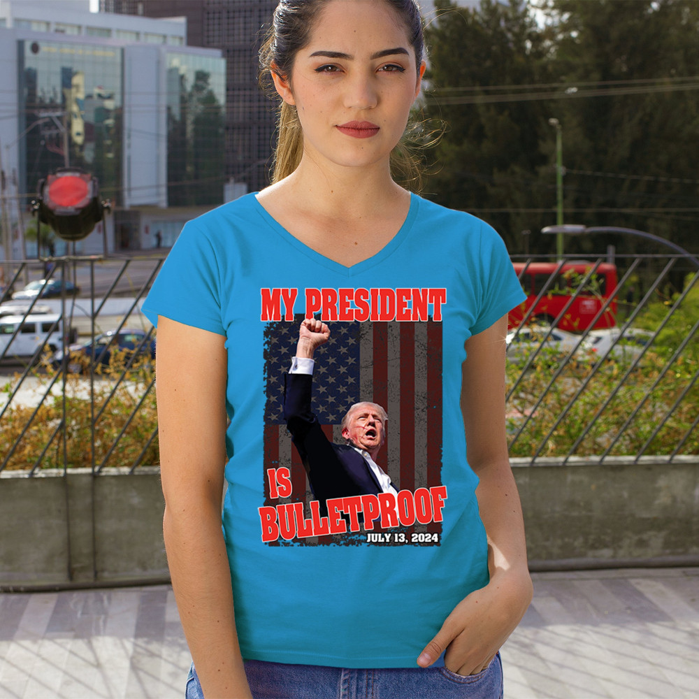 Support Trump with our "My President is Bulletproof" design, perfect for rallies and everyday wear. Show your patriotic pride and conservative values.