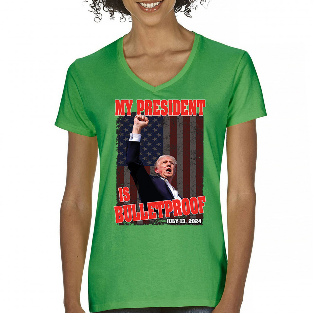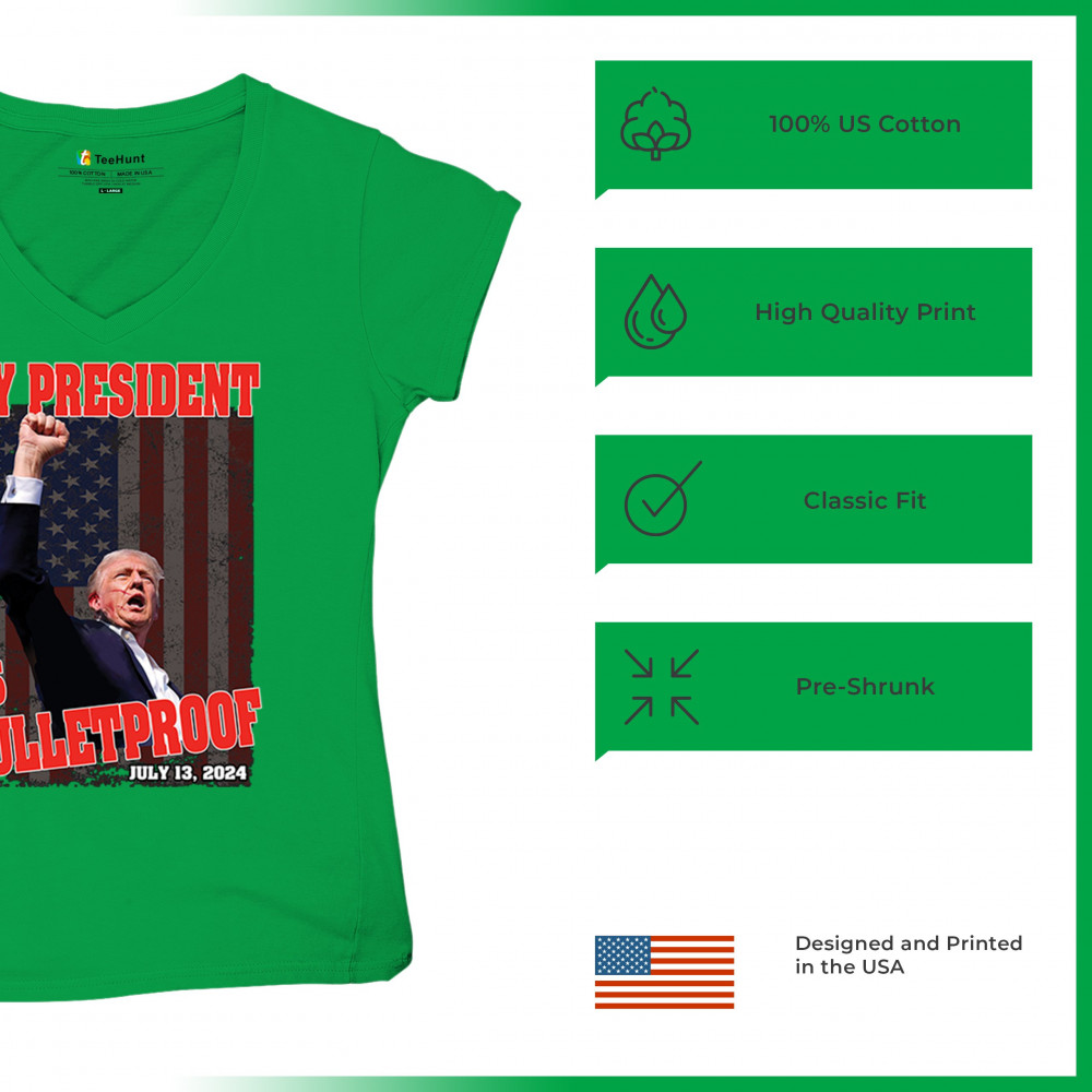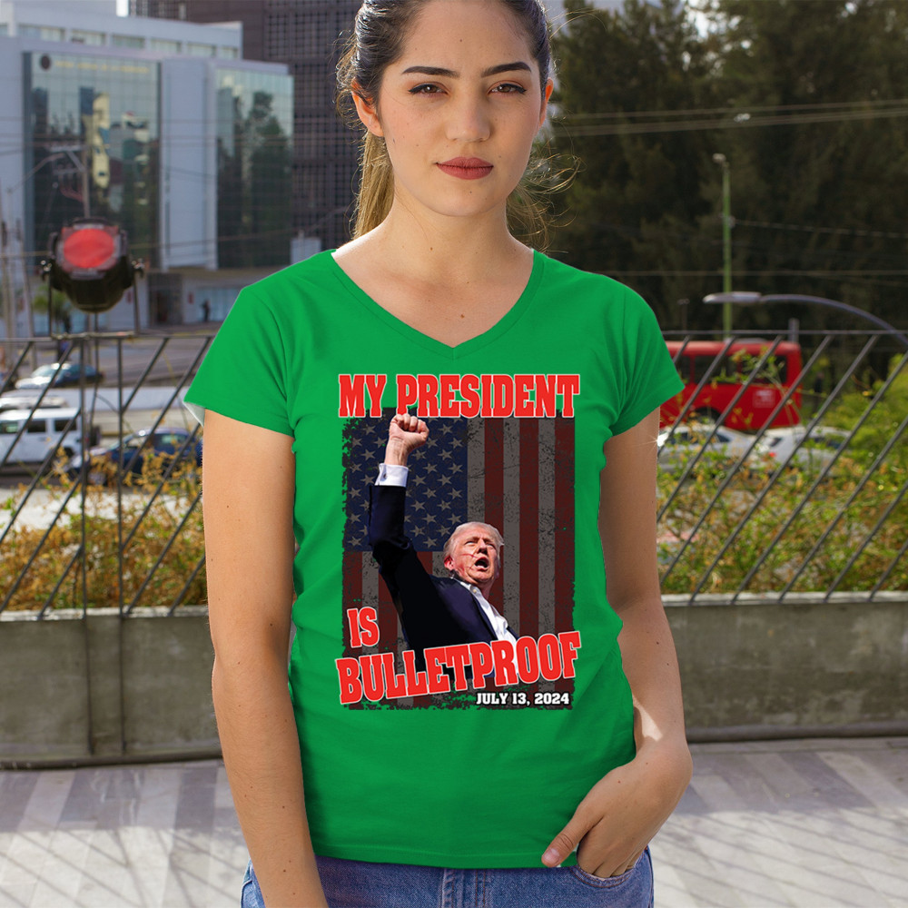 Support Trump with our "My President is Bulletproof" design, perfect for rallies and everyday wear. Show your patriotic pride and conservative values.