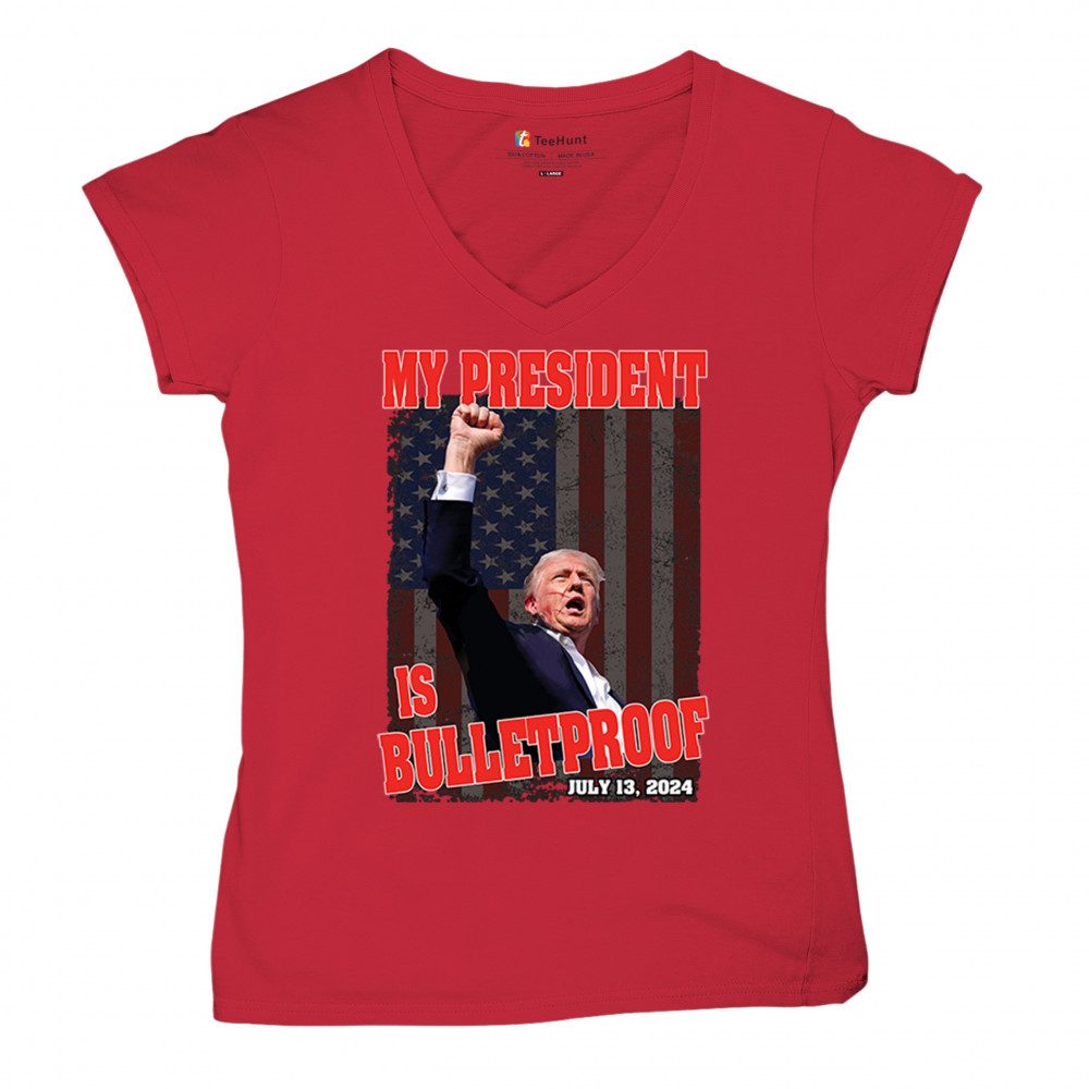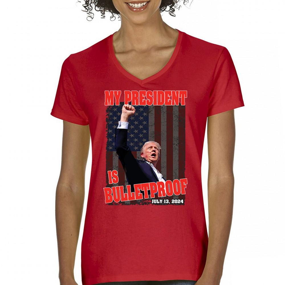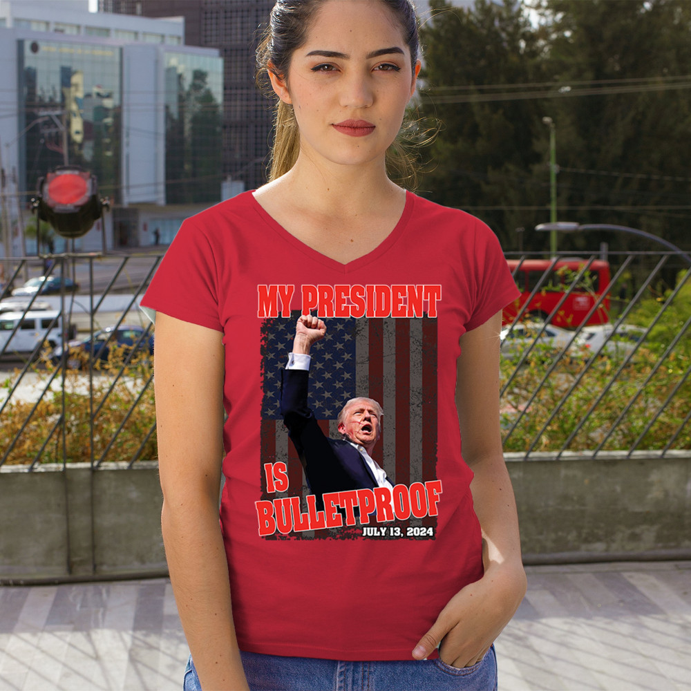 Support Trump with our "My President is Bulletproof" design, perfect for rallies and everyday wear. Show your patriotic pride and conservative values.