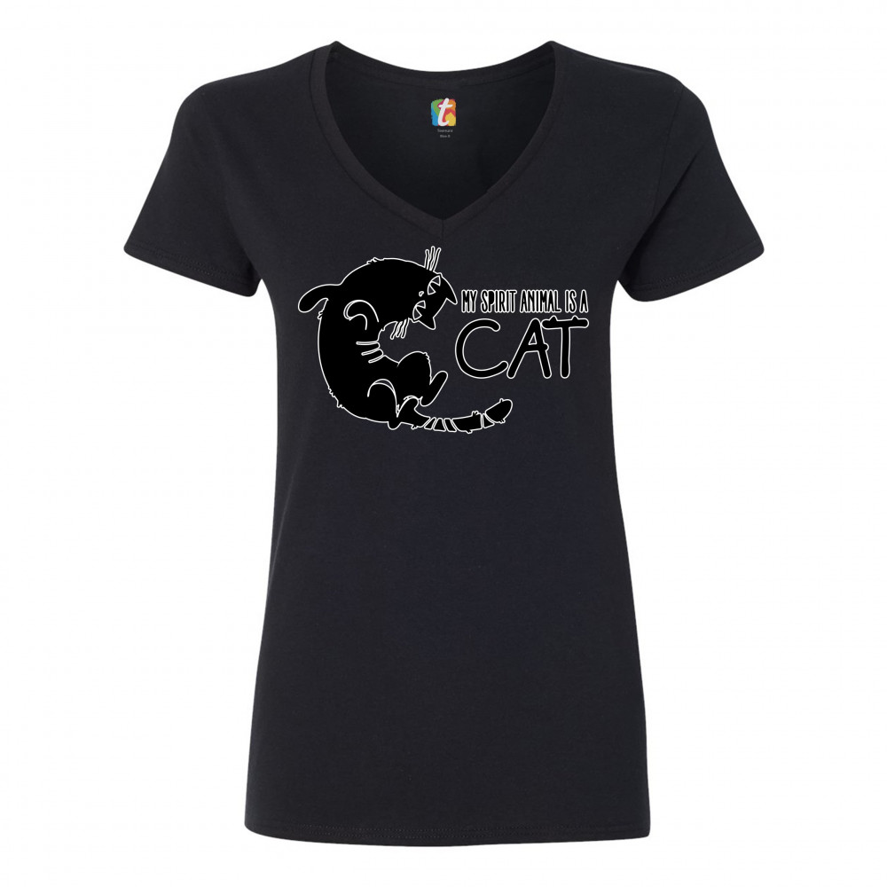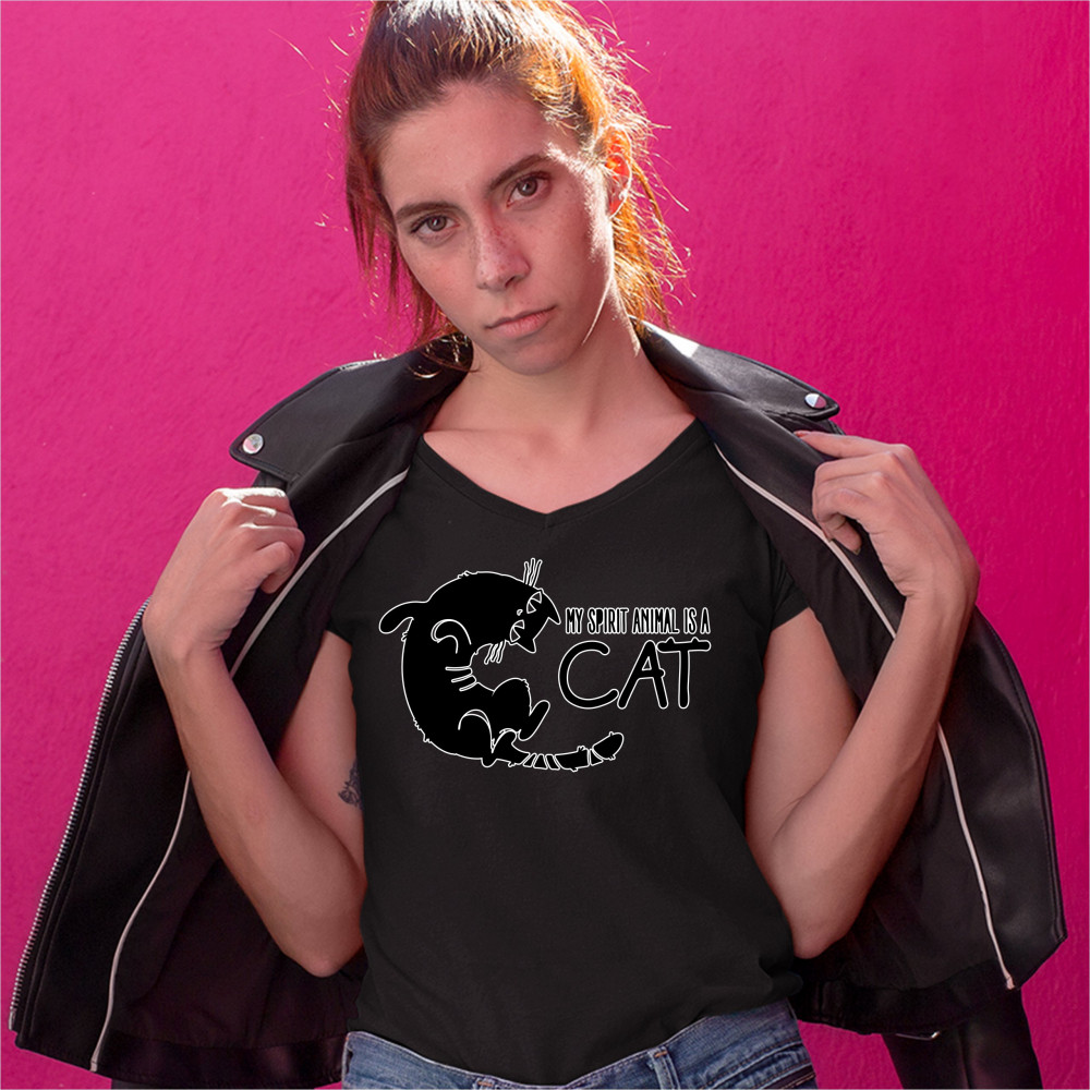 MY SPIRIT ANIMAL IS A CAT women's v-neck t-shirt cute kitty funny kitten tee black