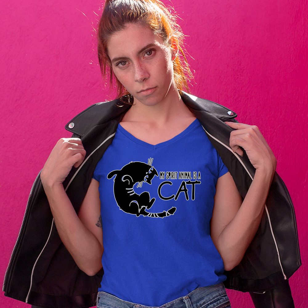 MY SPIRIT ANIMAL IS A CAT women's v-neck t-shirt cute kitty funny kitten tee royal blue