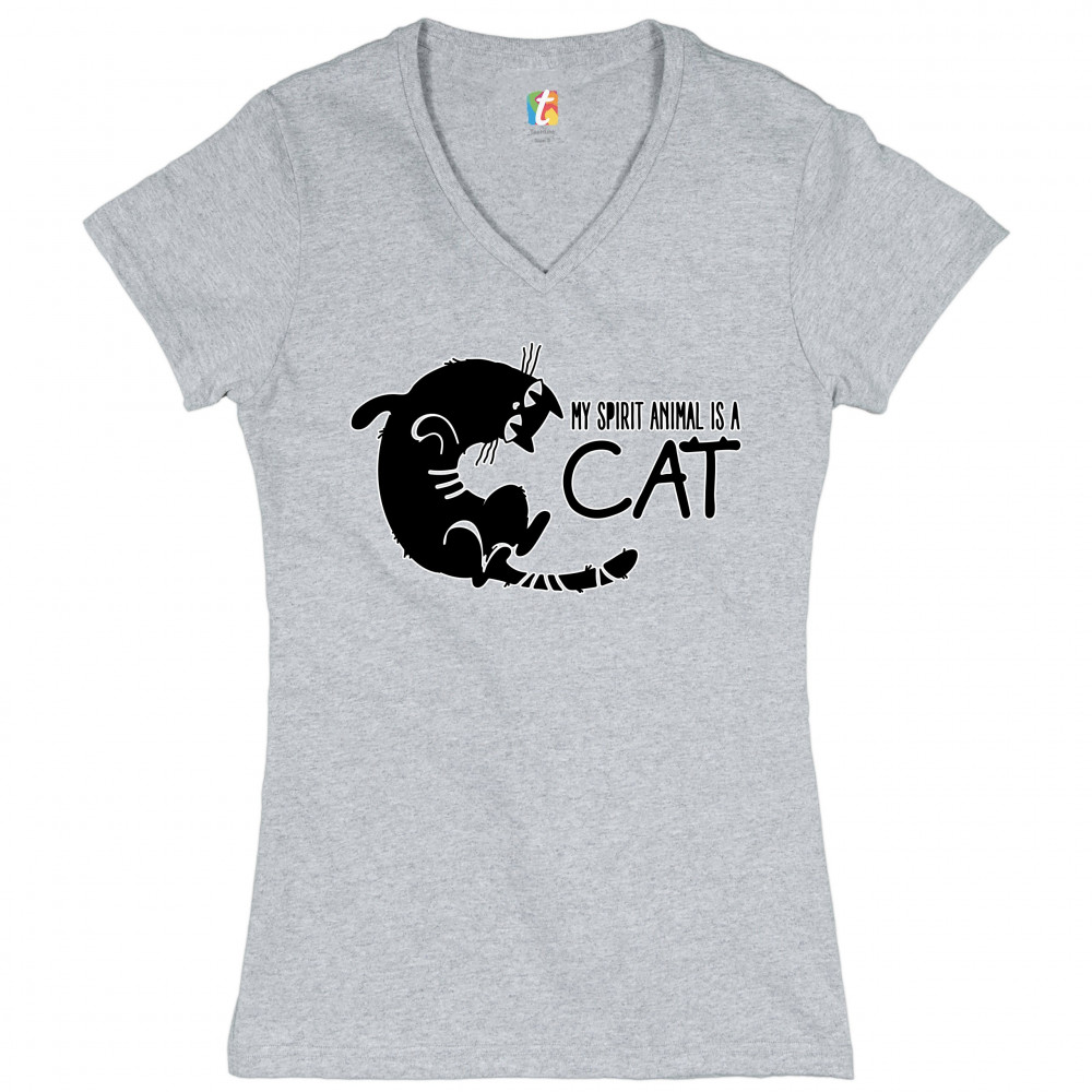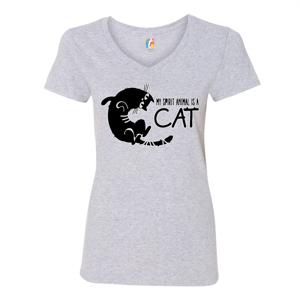 MY SPIRIT ANIMAL IS A CAT women's v-neck t-shirt cute kitty funny kitten tee gray