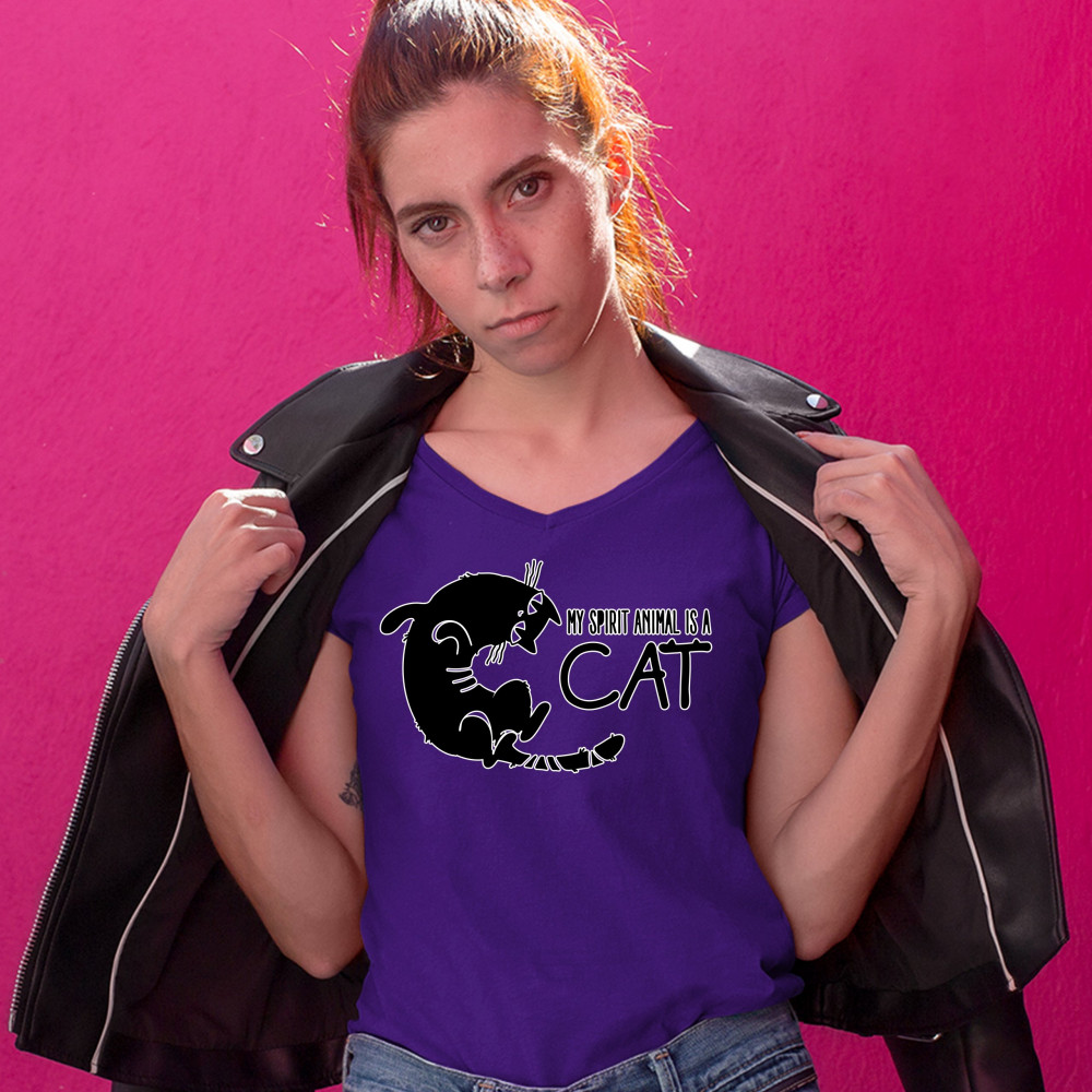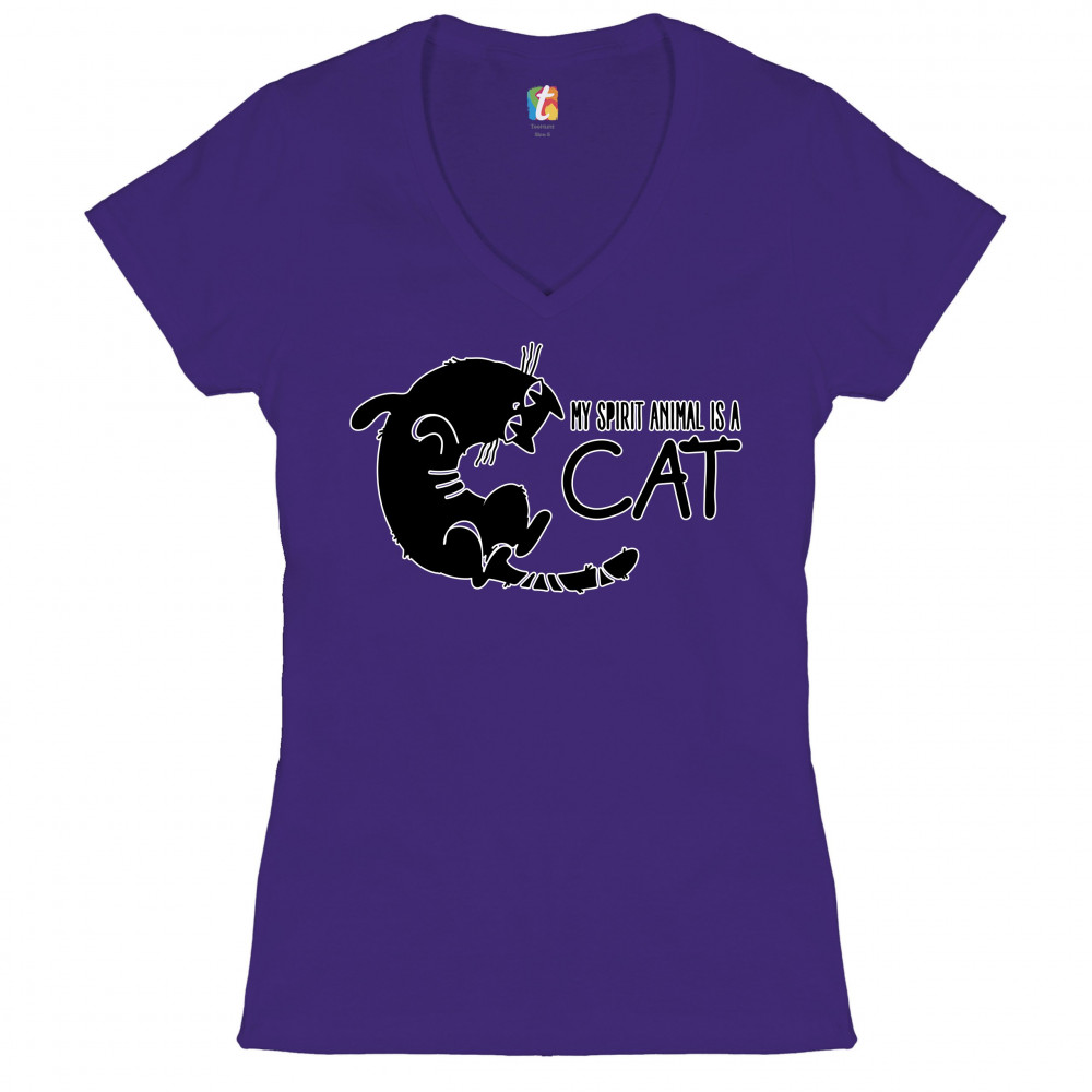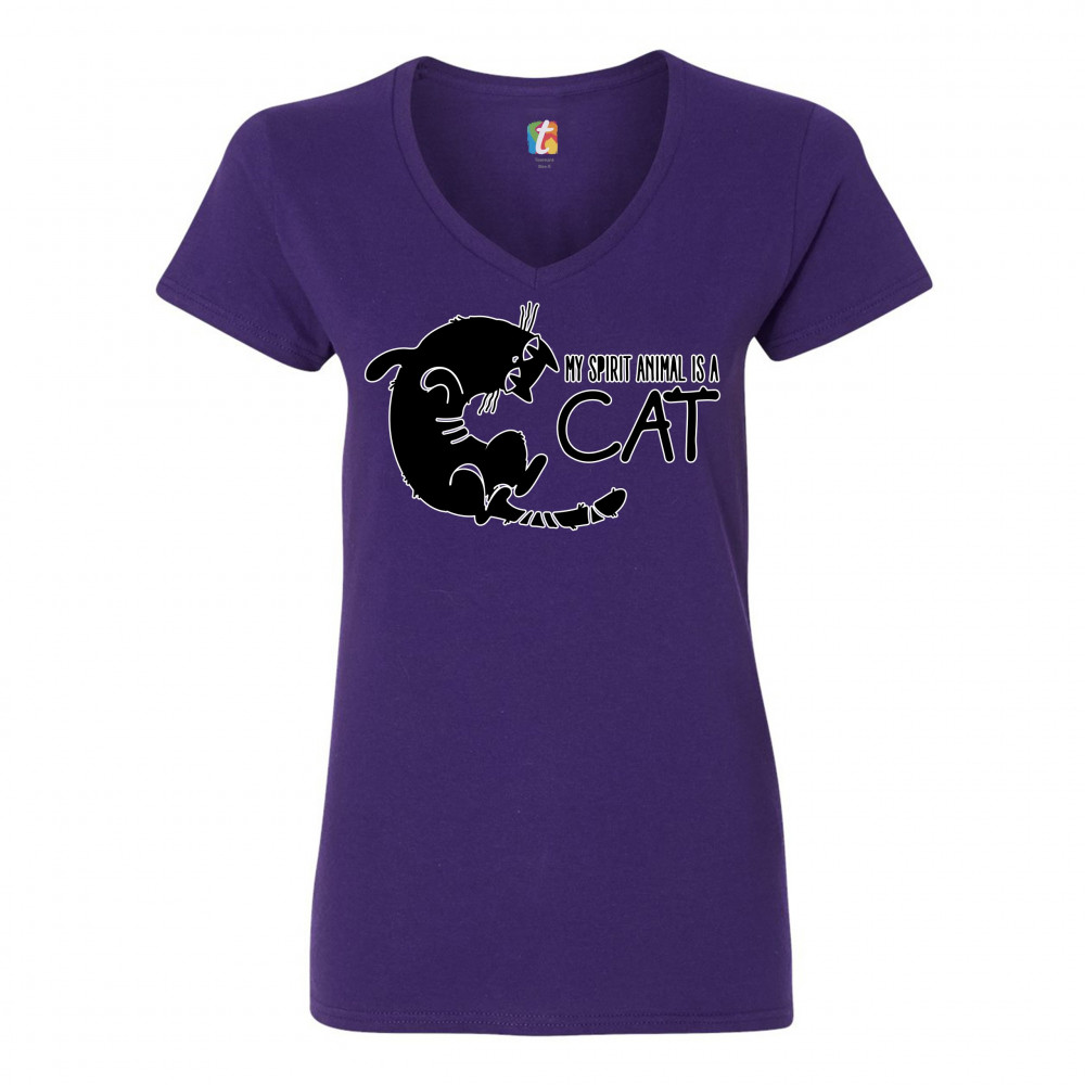 MY SPIRIT ANIMAL IS A CAT women's v-neck t-shirt cute kitty funny kitten tee purple