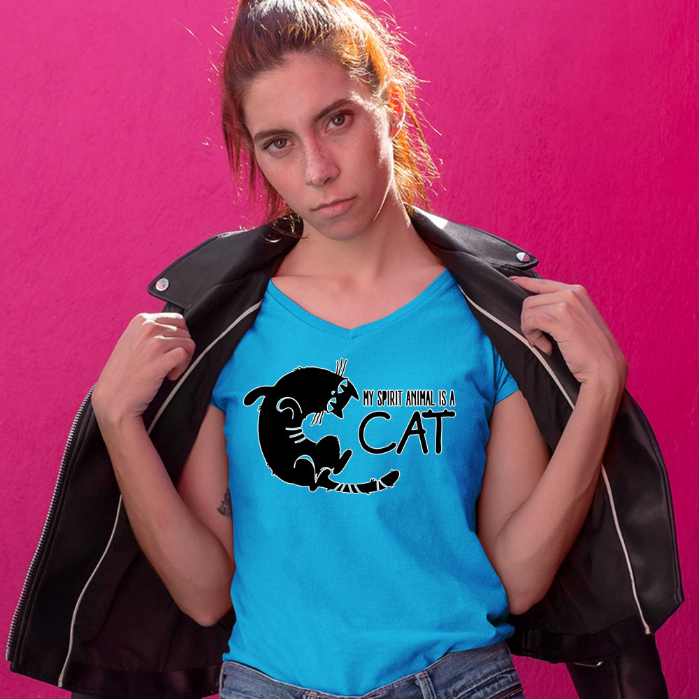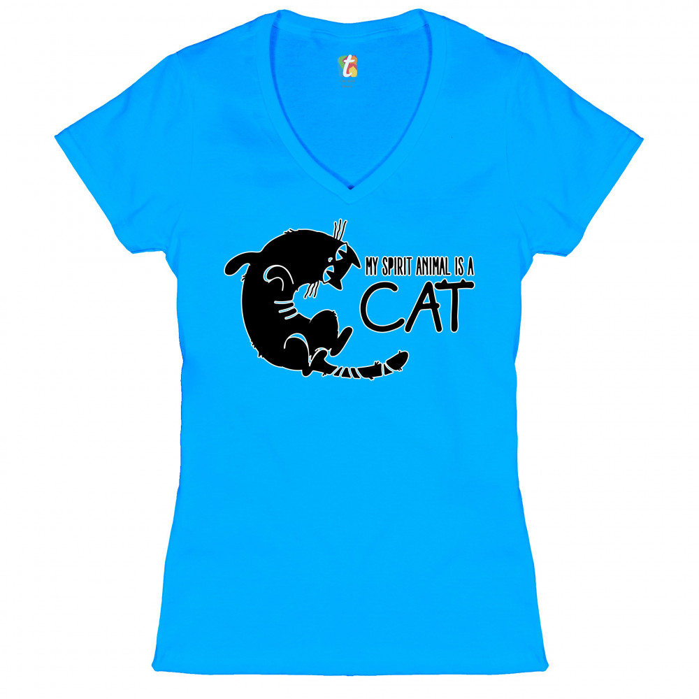 MY SPIRIT ANIMAL IS A CAT women's v-neck t-shirt cute kitty funny kitten tee turquoise