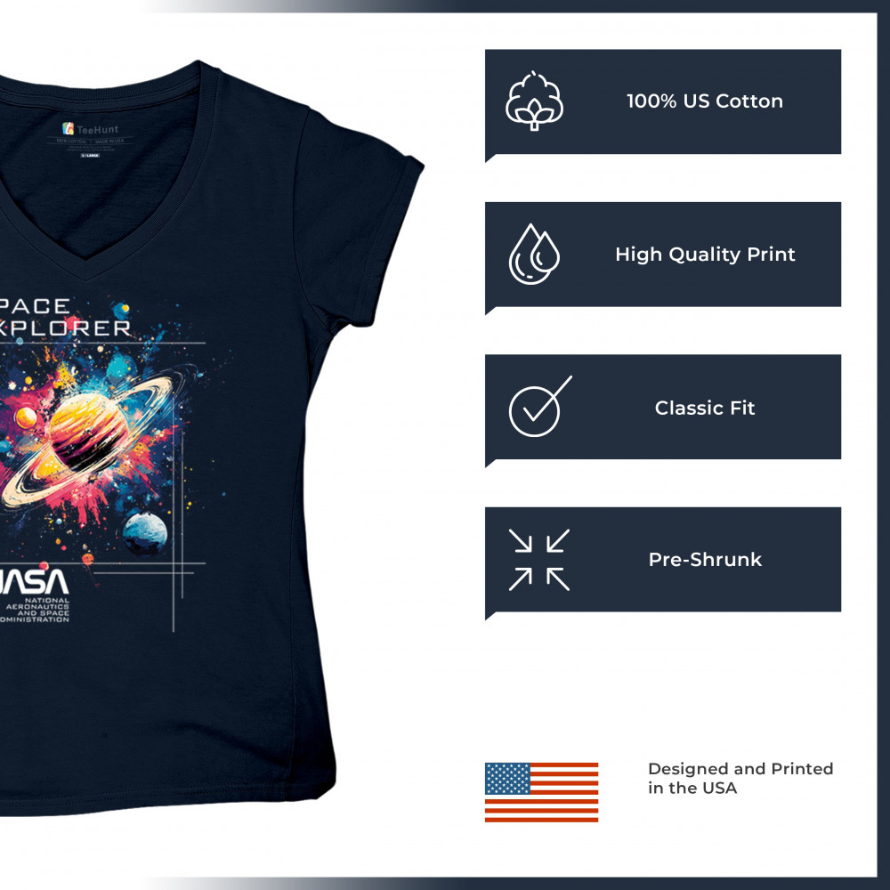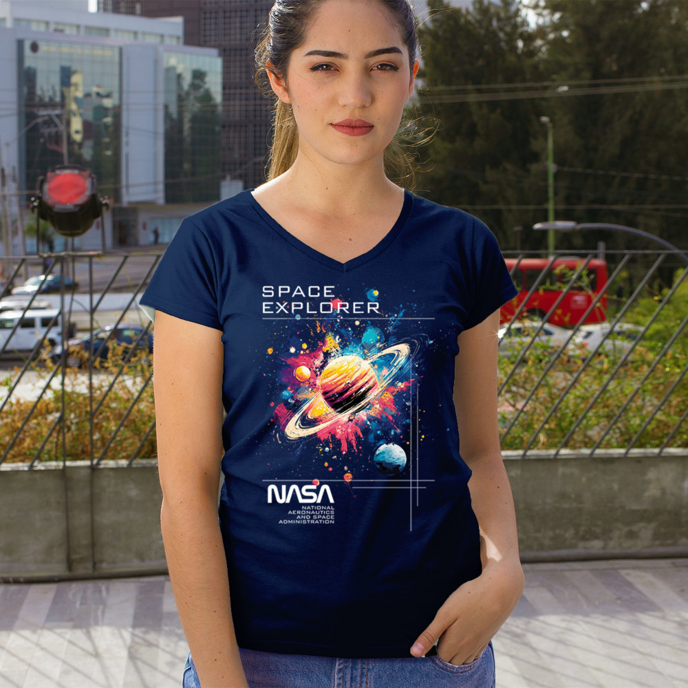 Bold and inspiring, this NASA Space Explorer design features Saturn in a cosmic paint splash with official branding. Ideal for fans of the Apollo program, moon landings, rocket launch history, and vintage NASA aesthetics. A great fit for space travel lovers, cosmic dreamers, and proud supporters of American exploration.