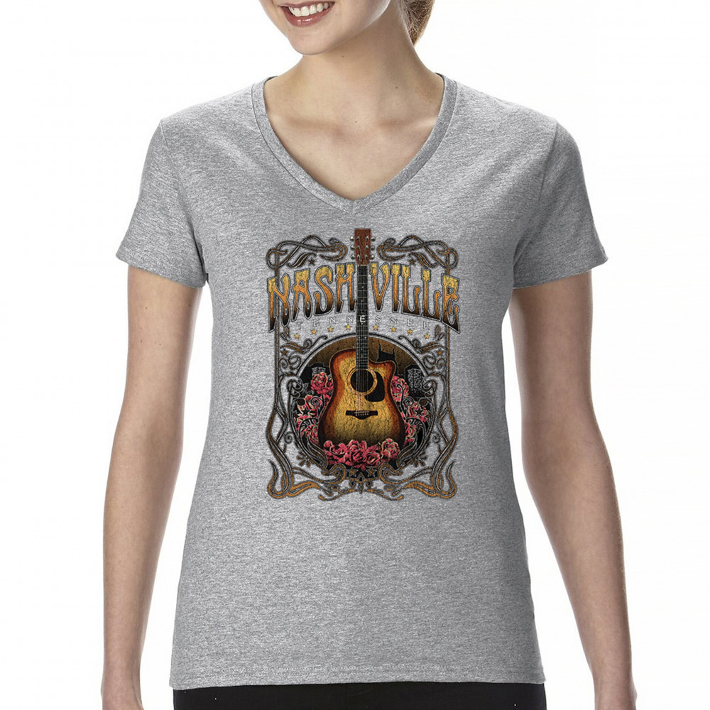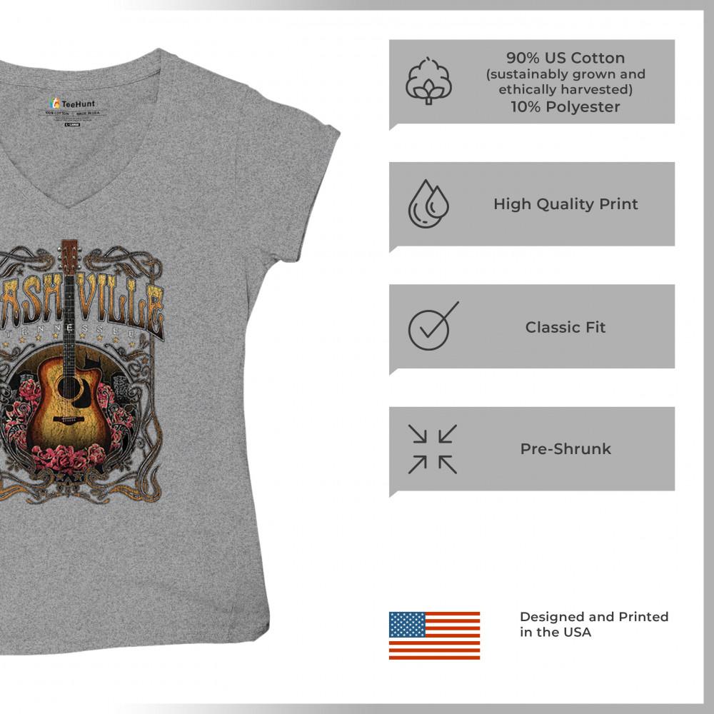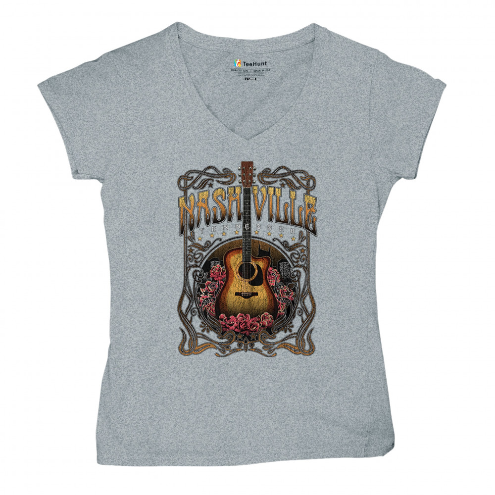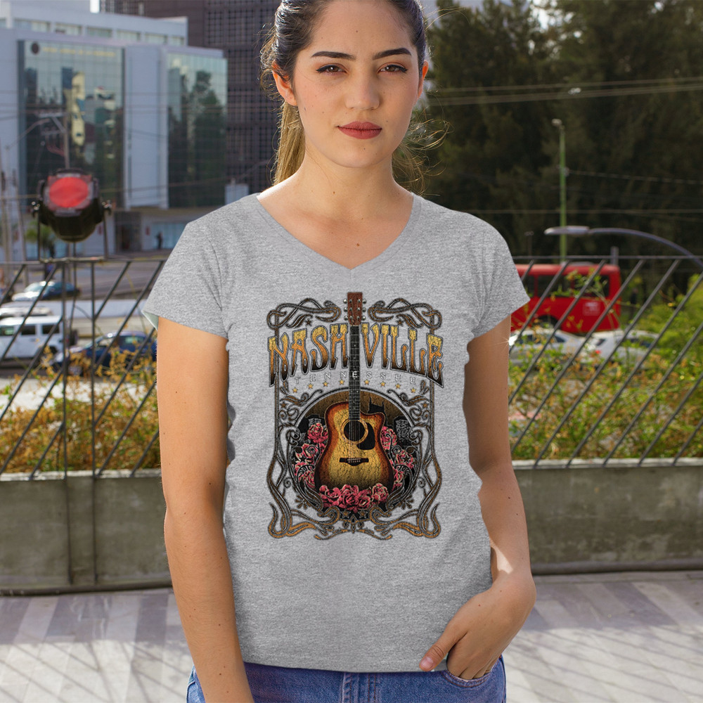 Vintage Nashville Tennessee design with rustic guitar and roses. Great for concerts, country music fans, road trips, and souvenir wear.