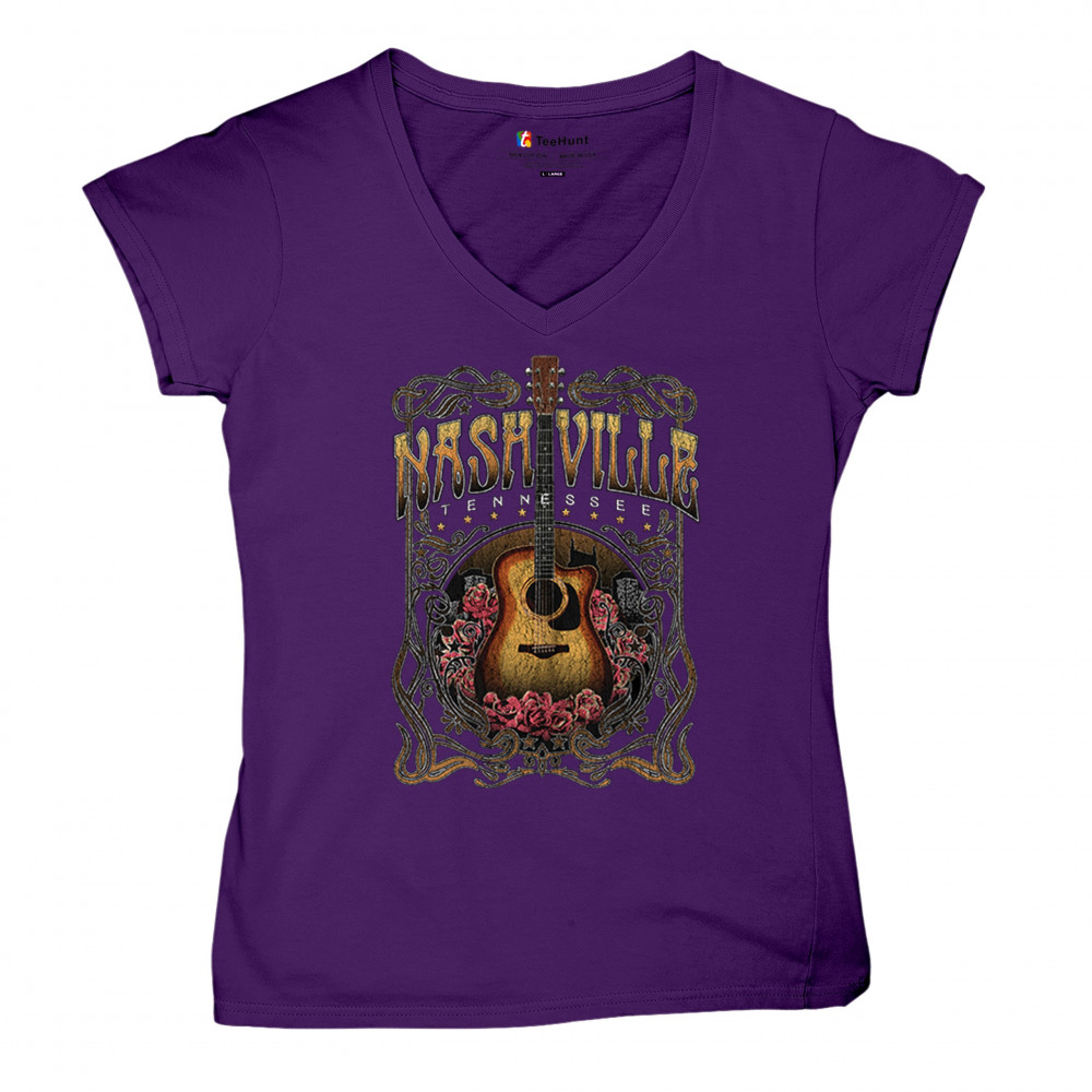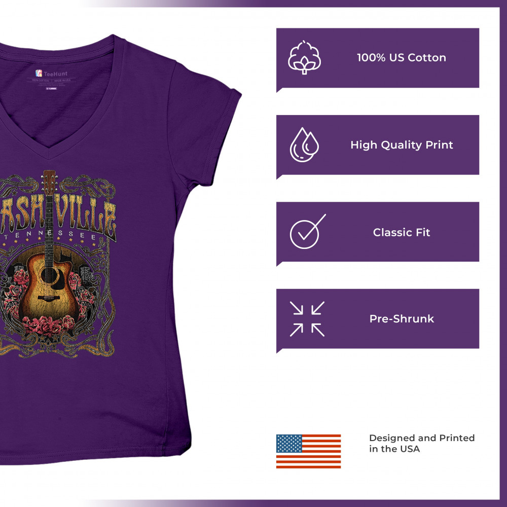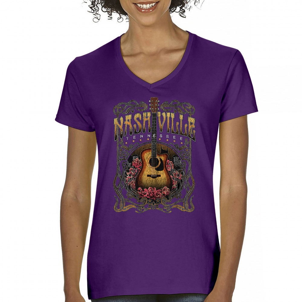 Vintage Nashville Tennessee design with rustic guitar and roses. Great for concerts, country music fans, road trips, and souvenir wear.