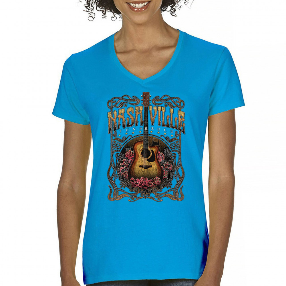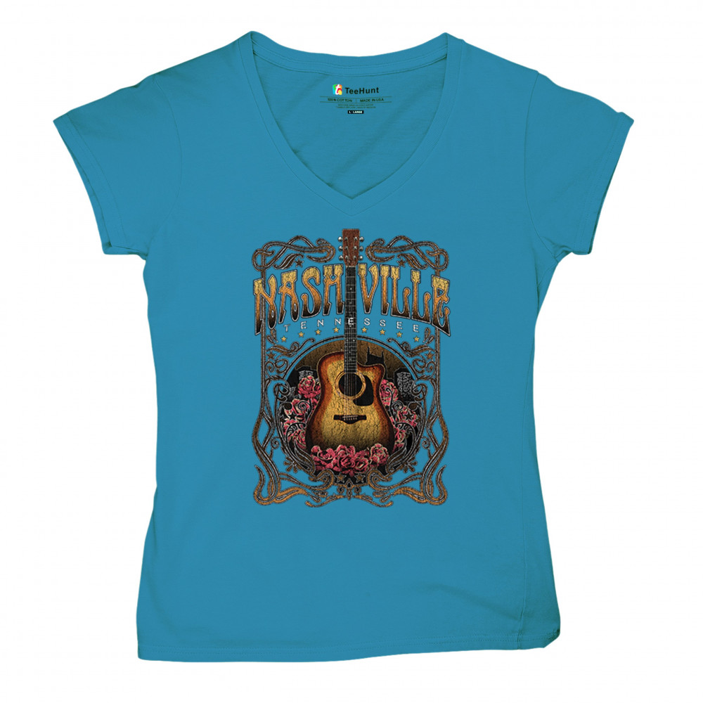 Vintage Nashville Tennessee design with rustic guitar and roses. Great for concerts, country music fans, road trips, and souvenir wear.