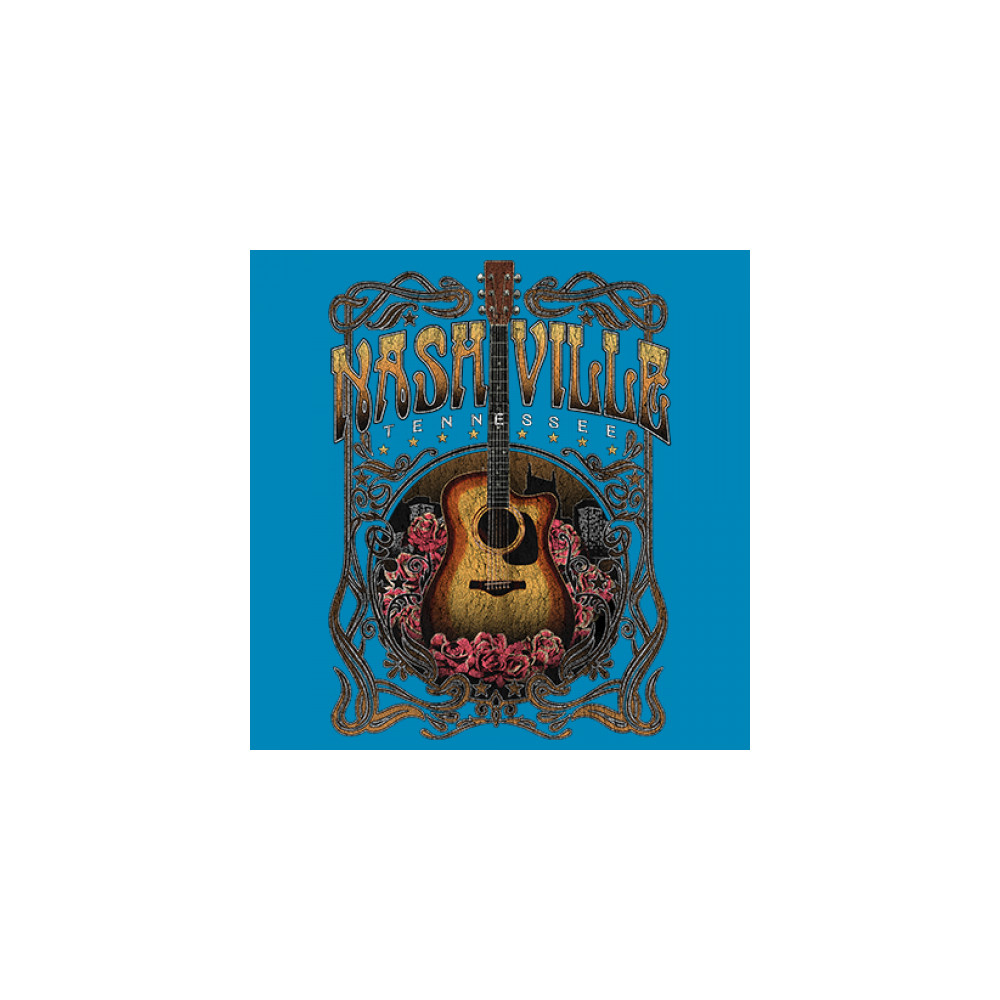 Celebrate the musical soul of Nashville with this vintage guitar and roses design. Perfect for fans of country, bluegrass, and folk music, it captures the charm of Music City with Western-style artwork. Great as a souvenir or for wearing to concerts, tours, and Tennessee road adventures.