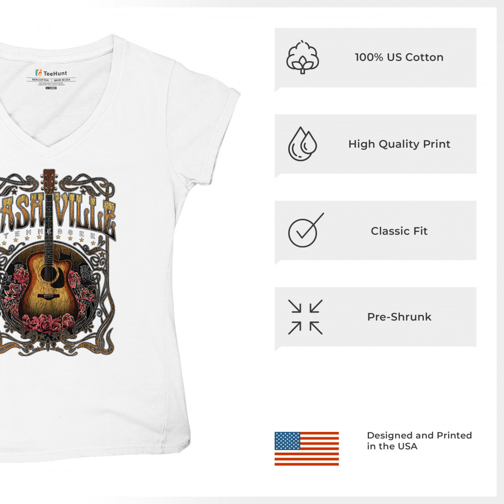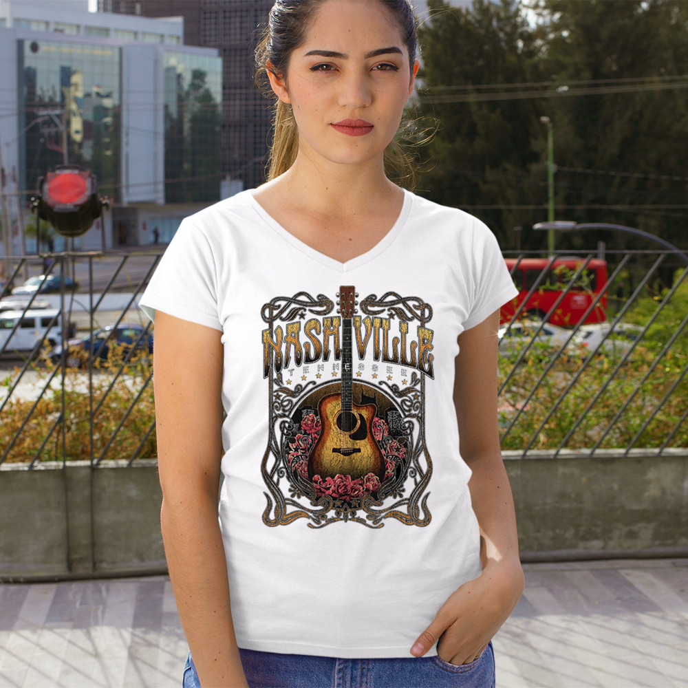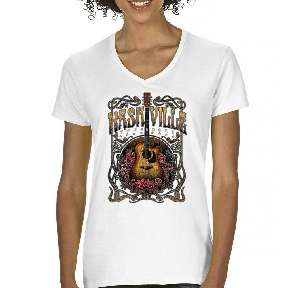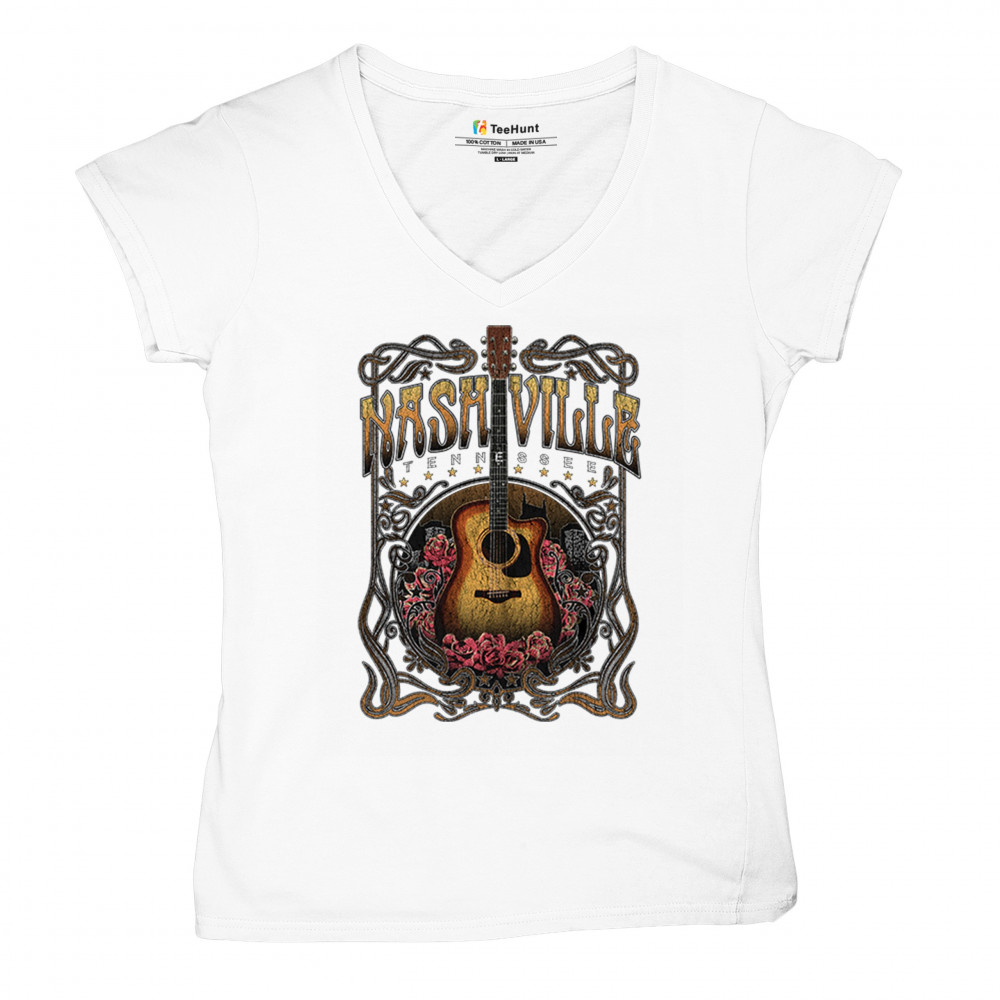 Vintage Nashville Tennessee design with rustic guitar and roses. Great for concerts, country music fans, road trips, and souvenir wear.