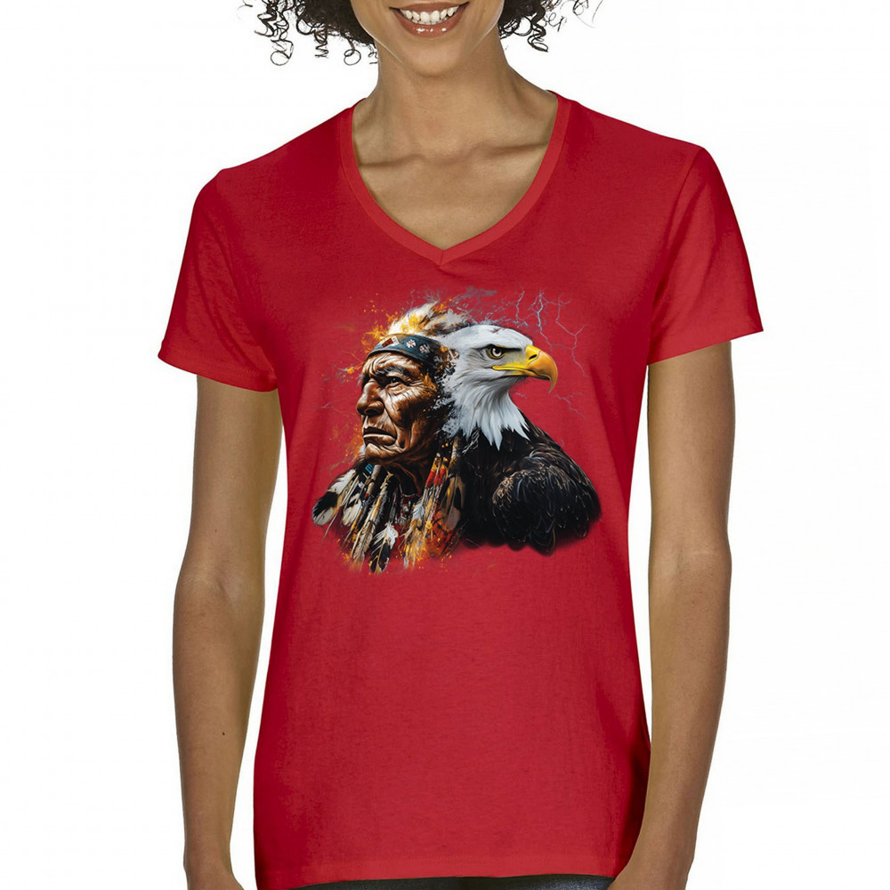 Bold tribal totem design with Native chief, eagle, lightning, and fire. A fierce blend of spirit, power, and cultural pride in one image.