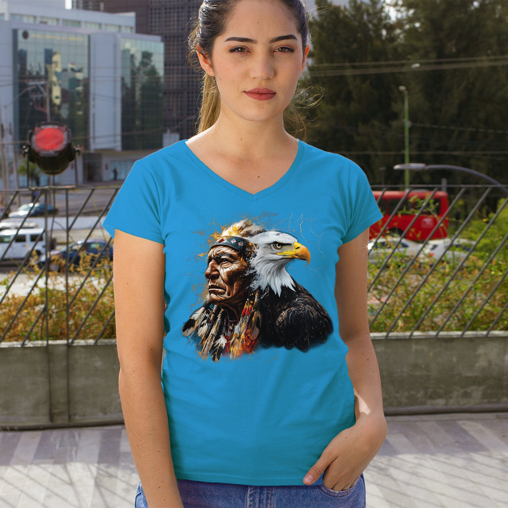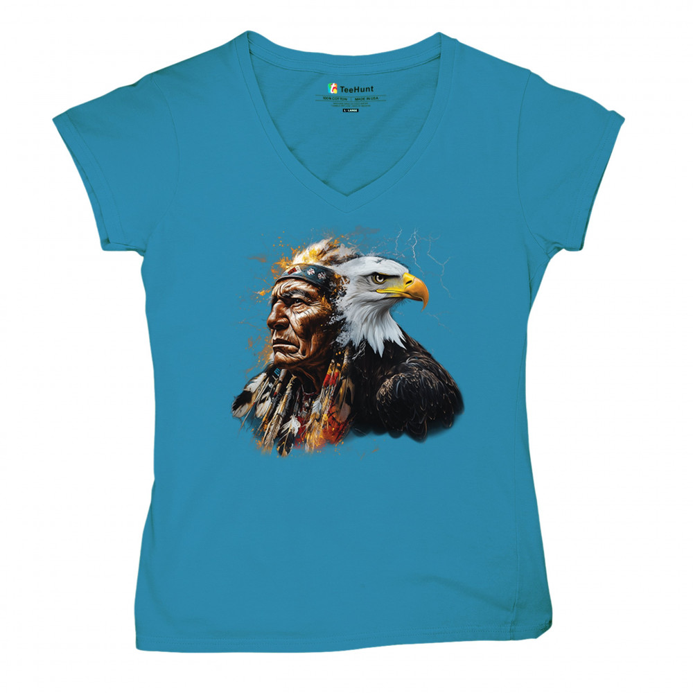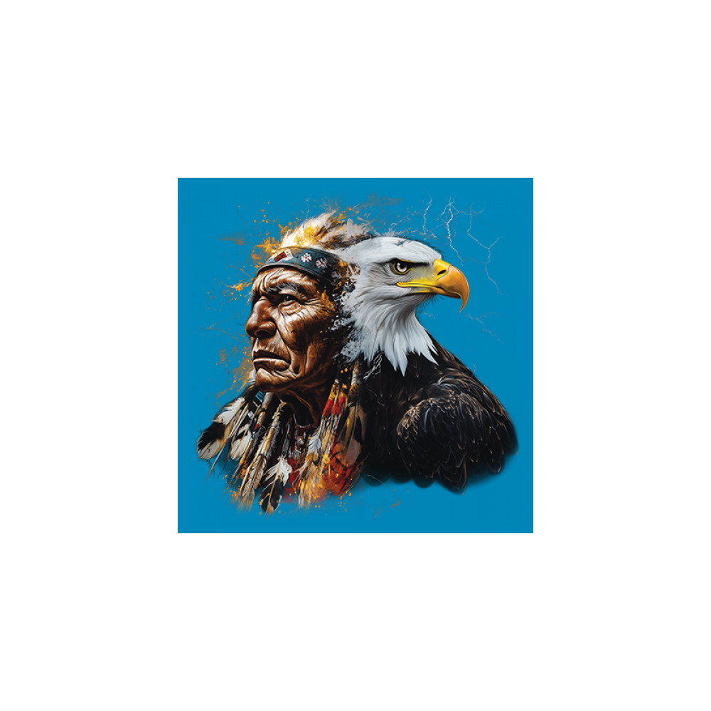 This electrifying design showcases a Native American chief with a bold bald eagle, surrounded by lightning and fire. It blends spiritual animal symbolism with cultural strength and pride. Ideal for admirers of tribal heritage, ancestral energy, and fierce visual storytelling through nature and tradition.