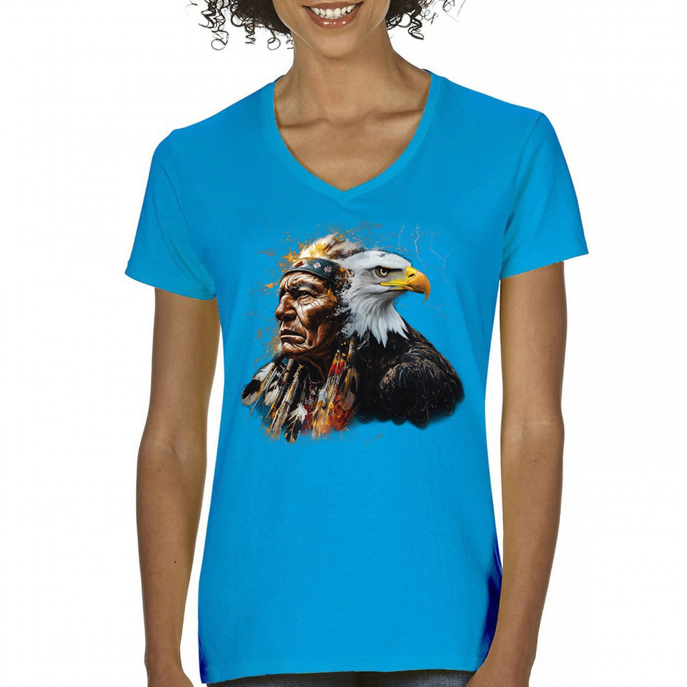Bold tribal totem design with Native chief, eagle, lightning, and fire. A fierce blend of spirit, power, and cultural pride in one image.