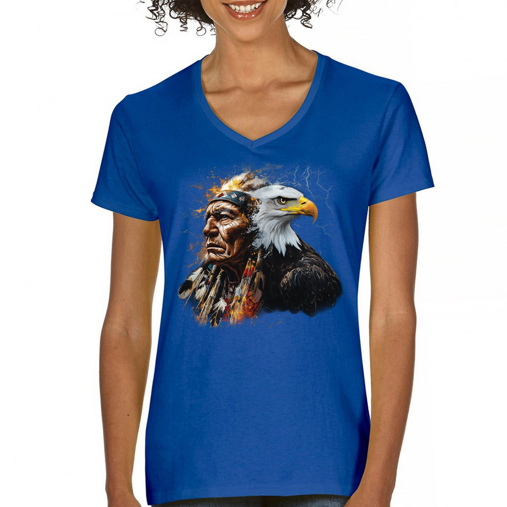 Bold tribal totem design with Native chief, eagle, lightning, and fire. A fierce blend of spirit, power, and cultural pride in one image.