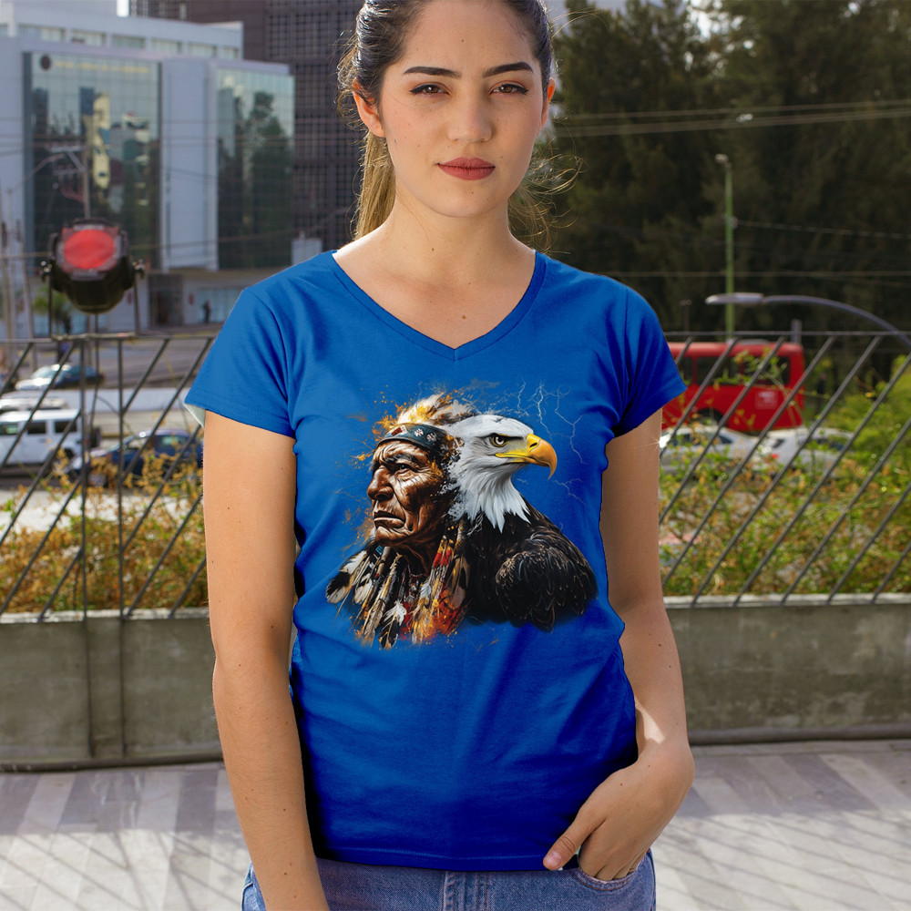 This electrifying design showcases a Native American chief with a bold bald eagle, surrounded by lightning and fire. It blends spiritual animal symbolism with cultural strength and pride. Ideal for admirers of tribal heritage, ancestral energy, and fierce visual storytelling through nature and tradition.