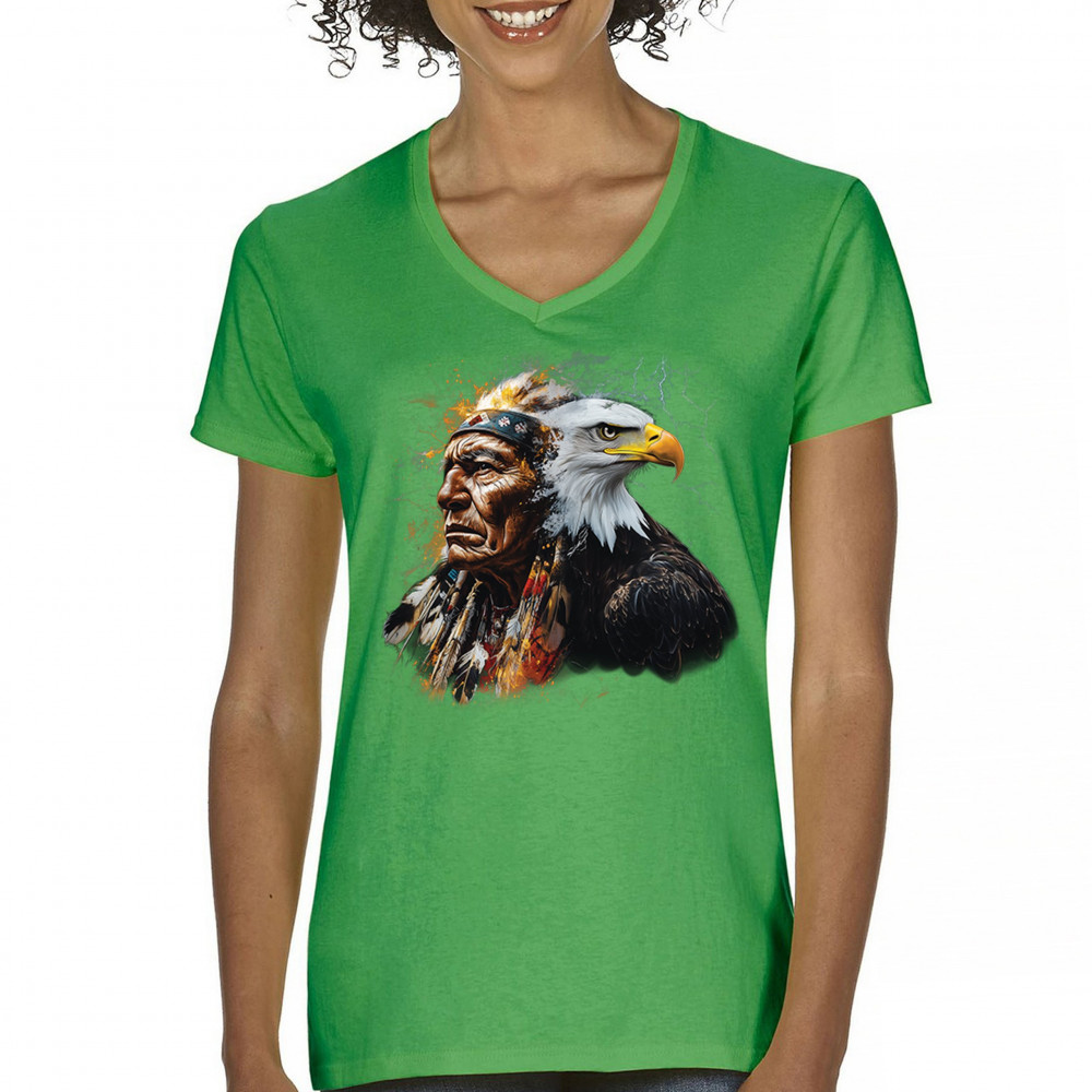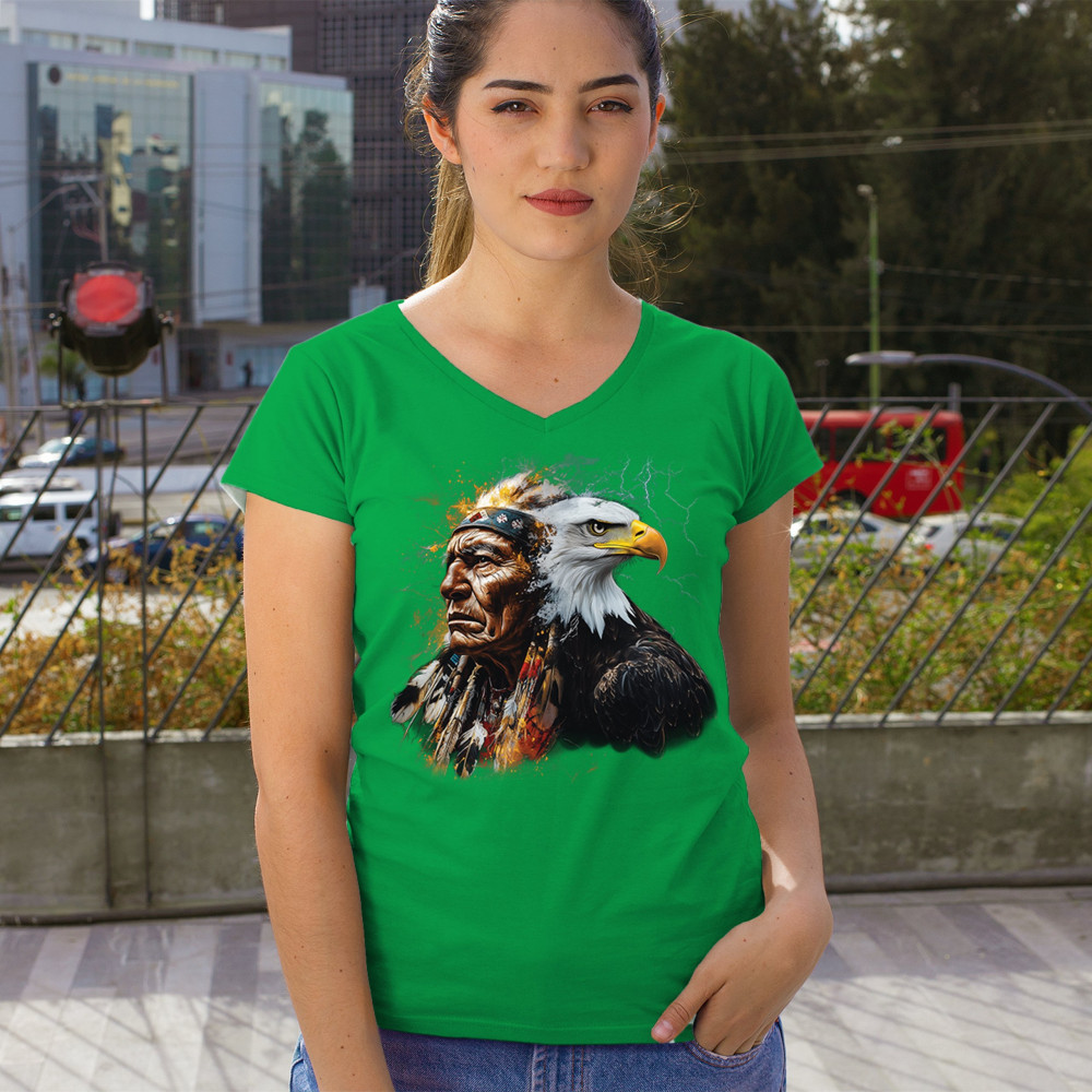 Bold tribal totem design with Native chief, eagle, lightning, and fire. A fierce blend of spirit, power, and cultural pride in one image.