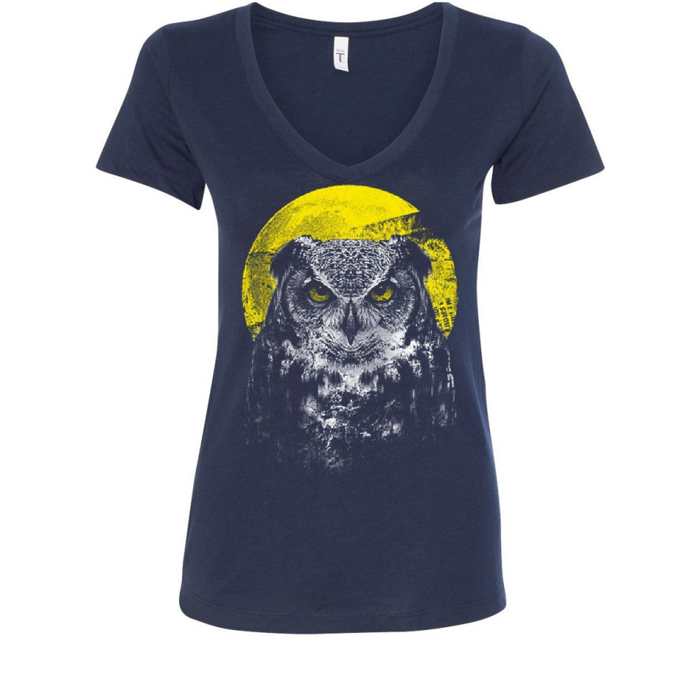 NIGHT OWL women's v-neck t-shirt bird nature wildlife wilderness wisdom moon navy blue