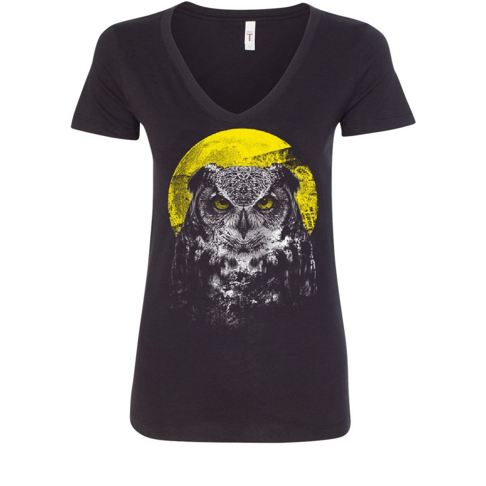 NIGHT OWL women's v-neck t-shirt bird nature wildlife wilderness wisdom moon black